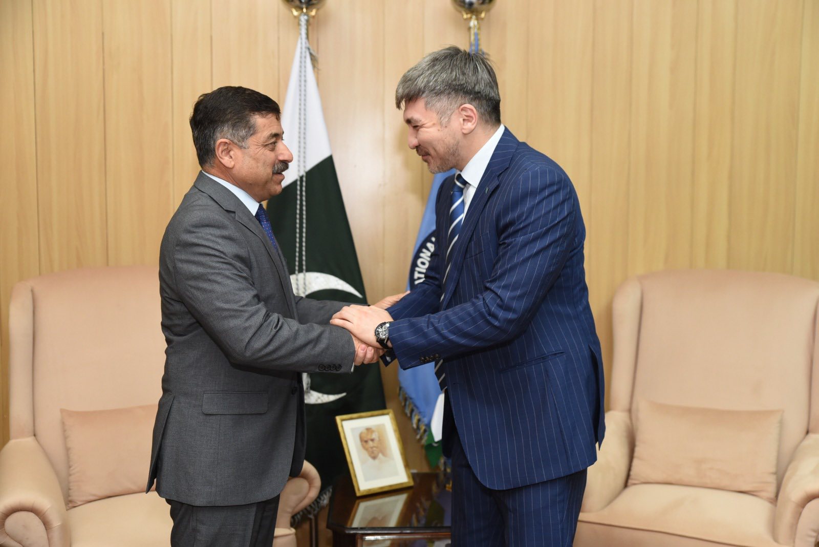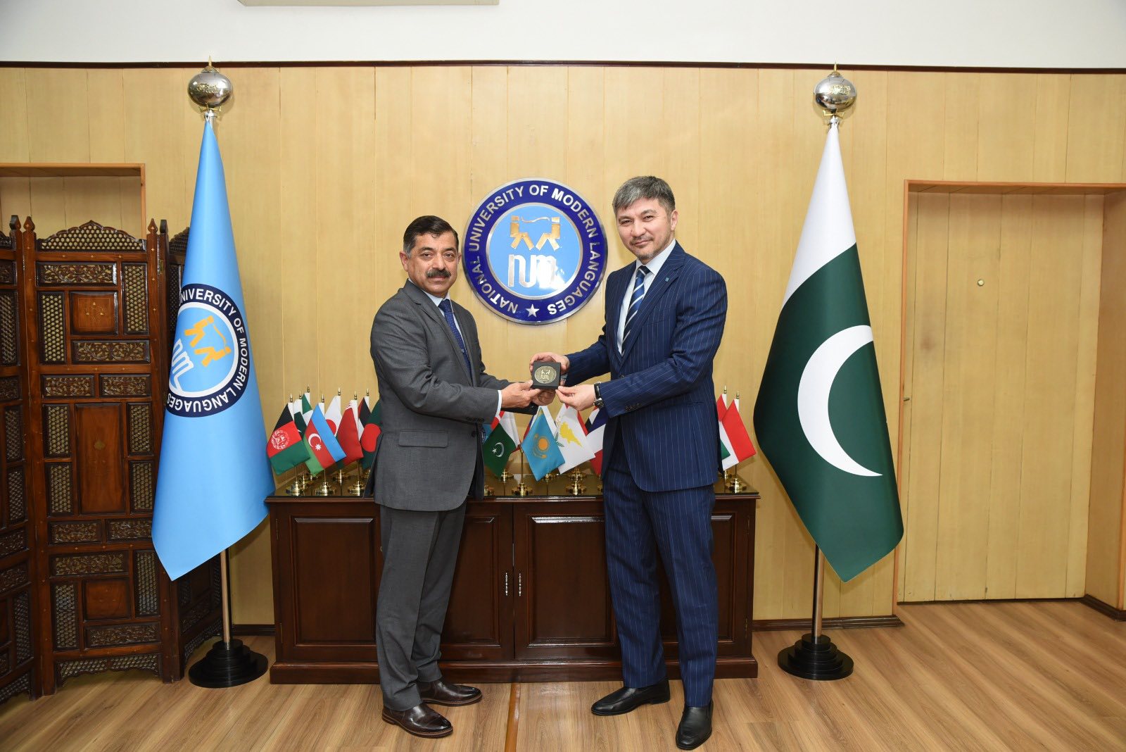 Исламабад, 2026 жылғы 7 сәуір – ҚР ПИР-дағы Елшісі Ержан Қыстафин Пәкістанның жетекші жоғары оқу орындарының бірі – «Заманауи тілдер ұлттық университетіне» (National University of Modern Languages – NUML) барып, университет ректоры Шахид Махмуд Каянимен кездесу өткізді.