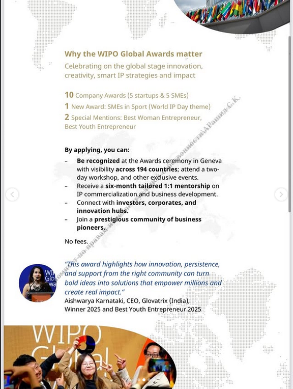 WIPO Global Awards сыйлыгынын бірегейлігі – ол бизнес аукымына, саласына жене шыккан еліне карамастан, зияткерлік меншік кукыктарын осудін стратегиялык активі ретінде пайдаланатын
