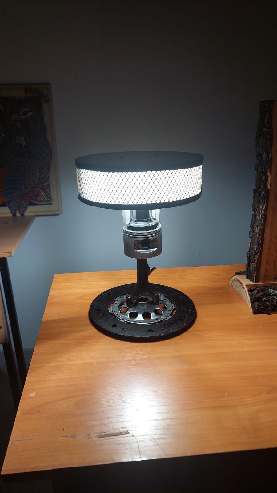 Үшінші «Механикалық жүректің жарығы» шамы ең ерекше әрі ең күрделі жұмыс болды. Ол металл автокөлік бөлшектерінен — болттардан, серіппелерден және түрлі қосалқы бөлшектерден жасалған. Әрбір бөлшек тазартылып, боялған. Бұрын қоқыс болып саналған заттар лофт стиліндегі нағыз арт-нысанға айналды.