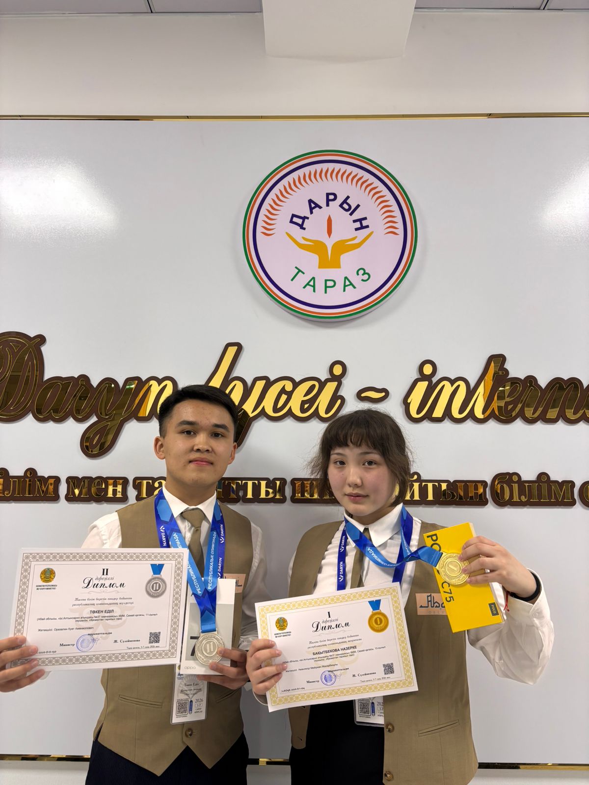 Жеңімпаз оқушылар Қазақстан Республикасы Оқу-ағарту министрлігінің I,II дәрежелі дипломдарымен, алтын, күміс медальдарымен және естелік сыйлықтармен марапатталды.