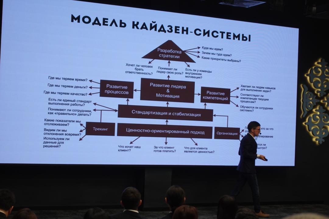 Семинар барысында Қазақстан-жапон орталығының сарапшысы Нұрлан Мұқалиев Кайдзен философиясының негізгі қағидаттарын және бизнес-процестерді оңтайландыруға, шығындарды азайтуға және кәсіпорындардың тиімділігін арттыруға бағытталған арық өндірістің практикалық құралдарын таныстырды.