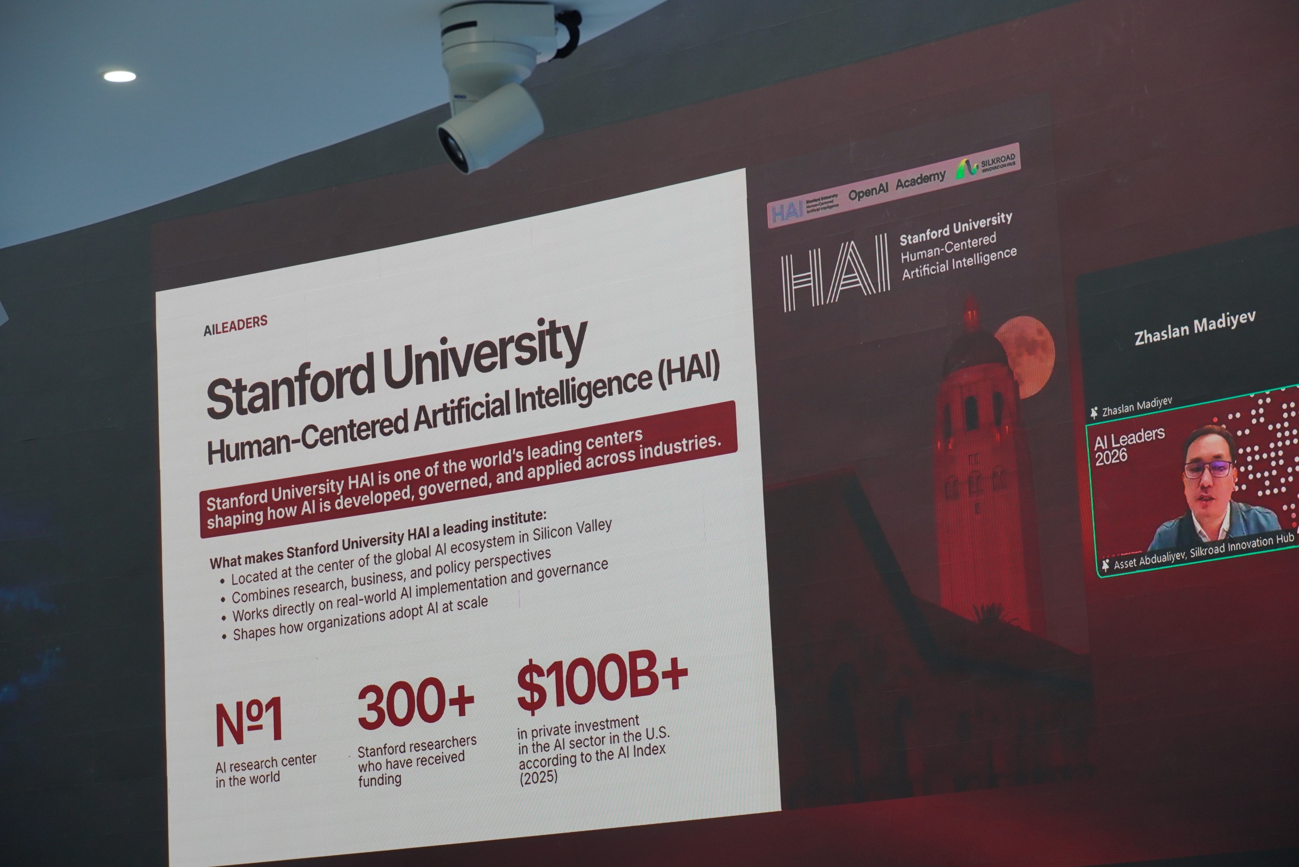 Мемлекет басшысының жүйелі цифрландыру және экономиканың барлық саласына ЖИ енгізу туралы тапсырмасын орындау аясында Жасанды интеллект және цифрлық даму министрлігі Стэнфорд университетінің Жасанды интеллект зерттеу орталығы – Stanford University Human-Centered Artificial Intelligence (HAI), ChatGPT жасаушысының білім беру платформасы – OpenAI Academy және Кремний алқабындағы халықаралық Silkroad Innovation Hubмен серіктестікте «AI Leaders 2026» флагмандық білім беру бағдарламасын бастайды.