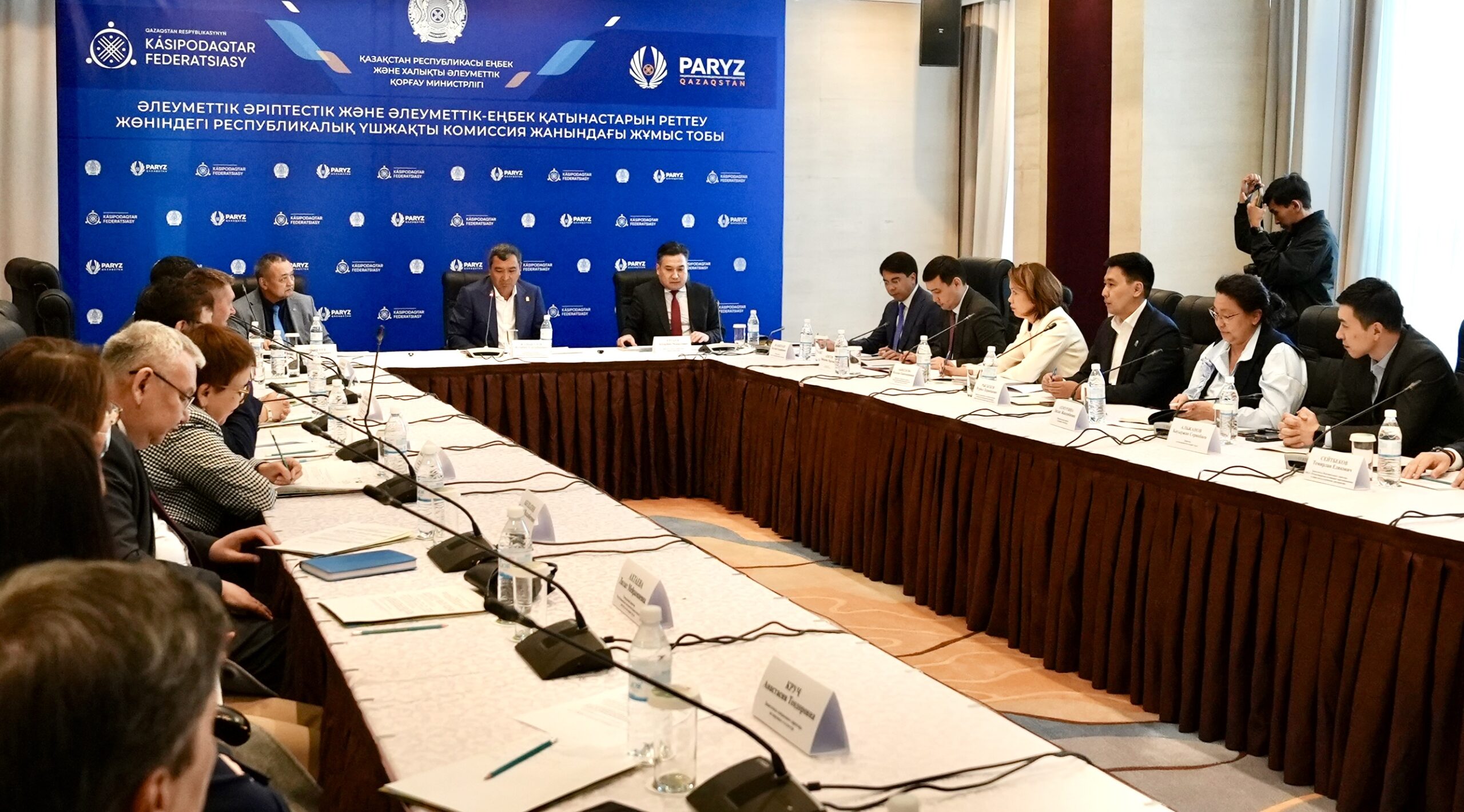ҚР Еңбек және халықты әлеуметтік қорғау министрі Асқарбек Ертаев әлеуметтік әріптестік және әлеуметтік-еңбек қатынастарын реттеу жөніндегі республикалық үшжақты комиссияның (РҮК) жұмыс тобының отырысына қатысты. Отырыс барысында қатысушылардың бірауыздан қабылдаған шешімімен осы жылдың соңына дейін жұмыс тобына төрағалық ету «PARYZ» Қазақстан Республикасы Ұлттық жұмыс берушілер конфедерациясына ресми түрде бекітілді.