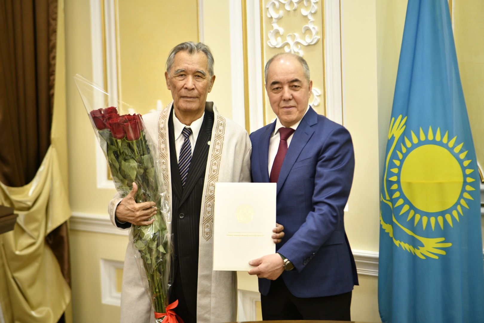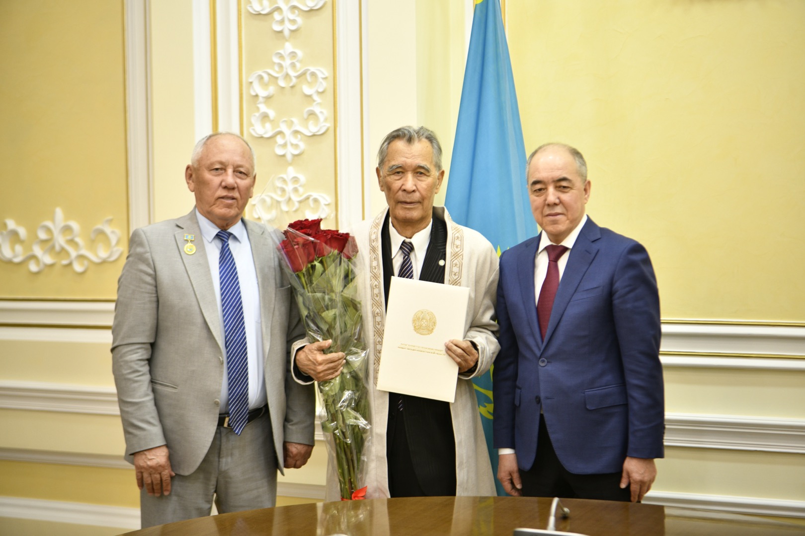Аймақ басшысы ғибратты ғұмыр иесінің еңбек жолына ерекше тоқталып, оның Жәнібек ауданының өсіп-өркендеуіне қосқан елеулі үлесін атап өтті. Абыз ақсақалға зор денсаулық, ұзақ ғұмыр тілеп, иығына шапан жапты.