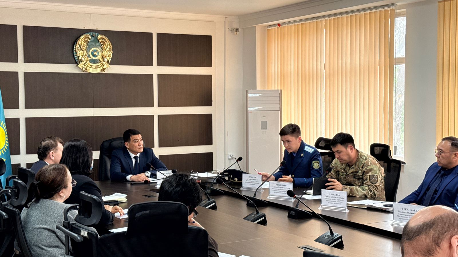 08 сәуір 2026 жылы Қазақстан Республикасы Еңбек және халықты әлеуметтік қорғау министрлігі Халықты әлеуметтік қорғау саласындағы реттеу және бақылау комитетінің Шымкент қаласы бойынша департаменті басшысы Р.К.Тұңғышбаевтың төрағалығымен Шымкент қаласы прокуратурасының прокуроры Даурен Даулетұлы , Шымкент қаласы Полиция департаменті Тергеу басқармасының бастығы, полиция полковнигі Е.Ә.Акмолда, Шымкент қаласының қорғаныс істері жөніндегі департаменті бастығының орынбасары Е.Д.Арынбаев және «Азаматтарға арналған үкімет» мемлекеттік корпорациясы» КЕАҚ-тың Шымкент қаласы бойынша филиалы директорының орынбасары М.А.Турганбаеваның қатысуымен жиналыс өтті.