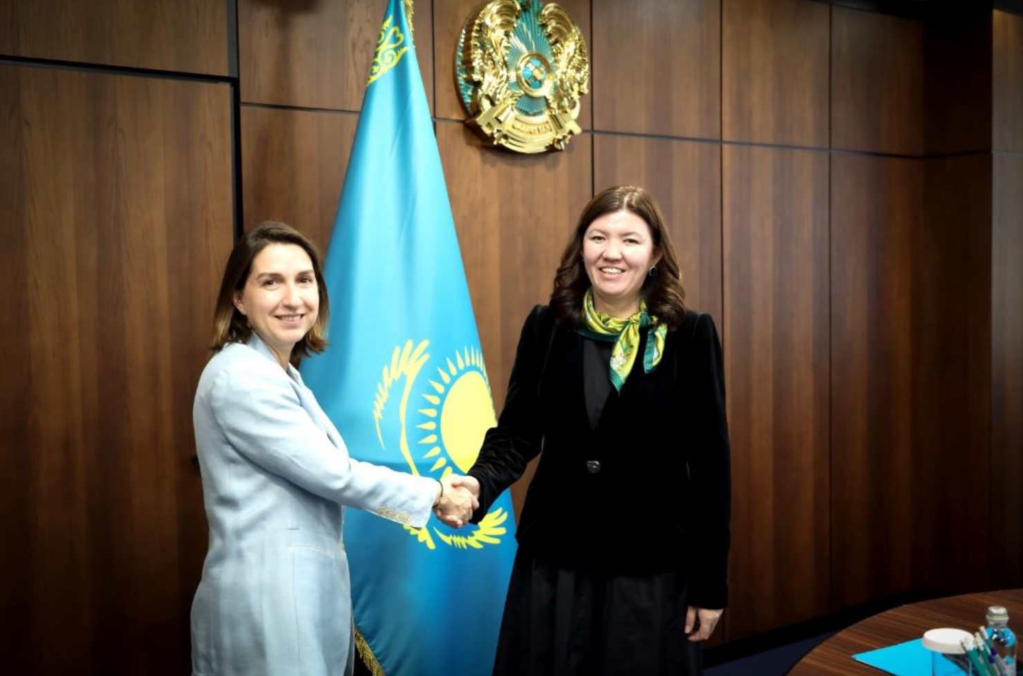ҚР Оқу-ағарту министрі Жұлдыз Сүлейменова «БҰҰ-Әйелдер» құрылымының Орталық Азия бойынша үйлестіру кеңсесінің басшысы әрі Қазақстандағы Елдік кеңсе өкілі Джерен Гювен Гюрэспен ресми кездесу өткізді. Басқосуға «БҰҰ-әйелдер» құрылымының Қазақстандағы бағдарламалар басшысы Дина Амришева да қатысты. Тараптар білім беру саласындағы іргелі реформаларды және бала құқықтарын қорғау тақырыбын талқылады.
