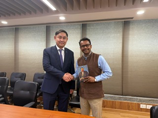 Нью-Дели, 2026 жылғы 8 сәуір – Қазақстан Республикасының Үндістан Республикасындағы Елшісі Азамат Есқараев Үндістан Сыртқы істер министрлігінің Сыртқы экономикалық қатынастар департаментінің Бас директоры др. Басир Ахмедпен кездесу өткізді.