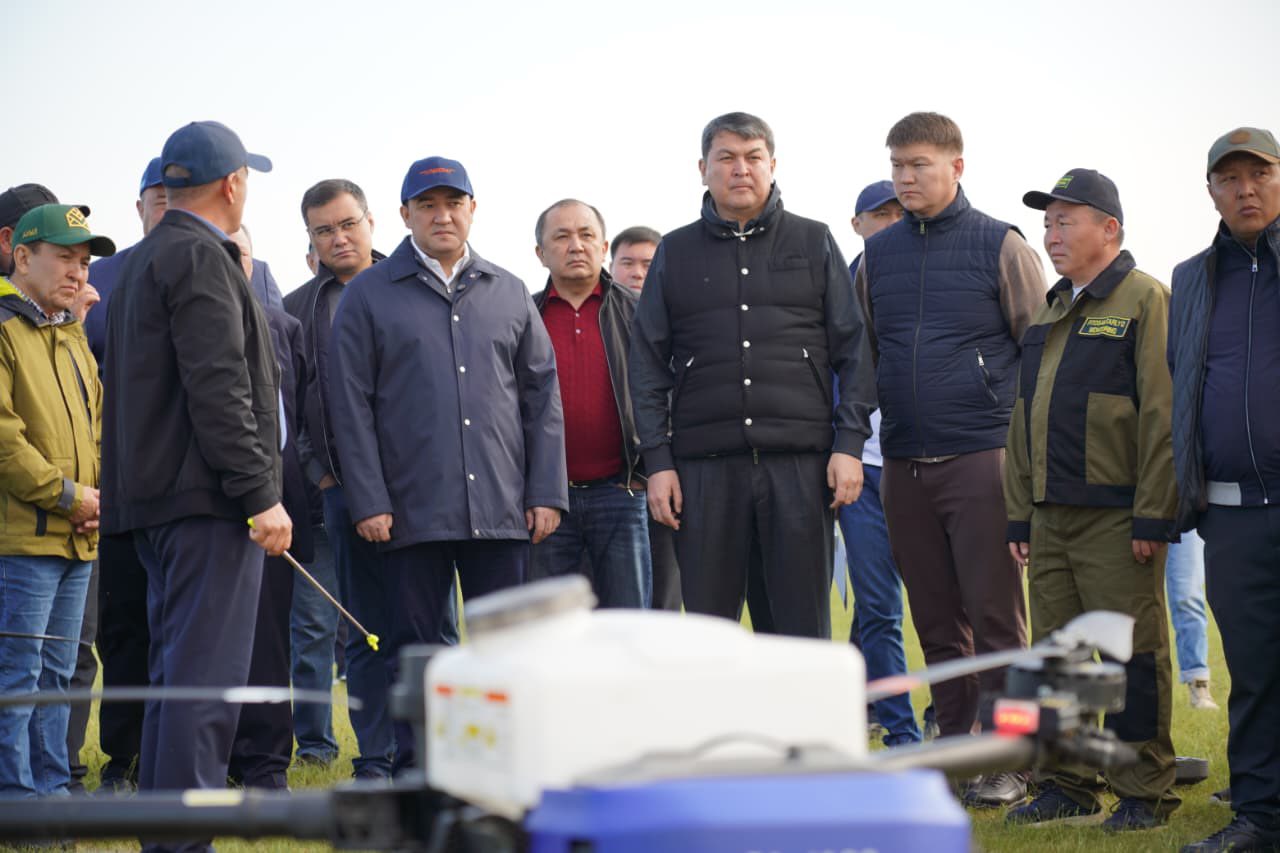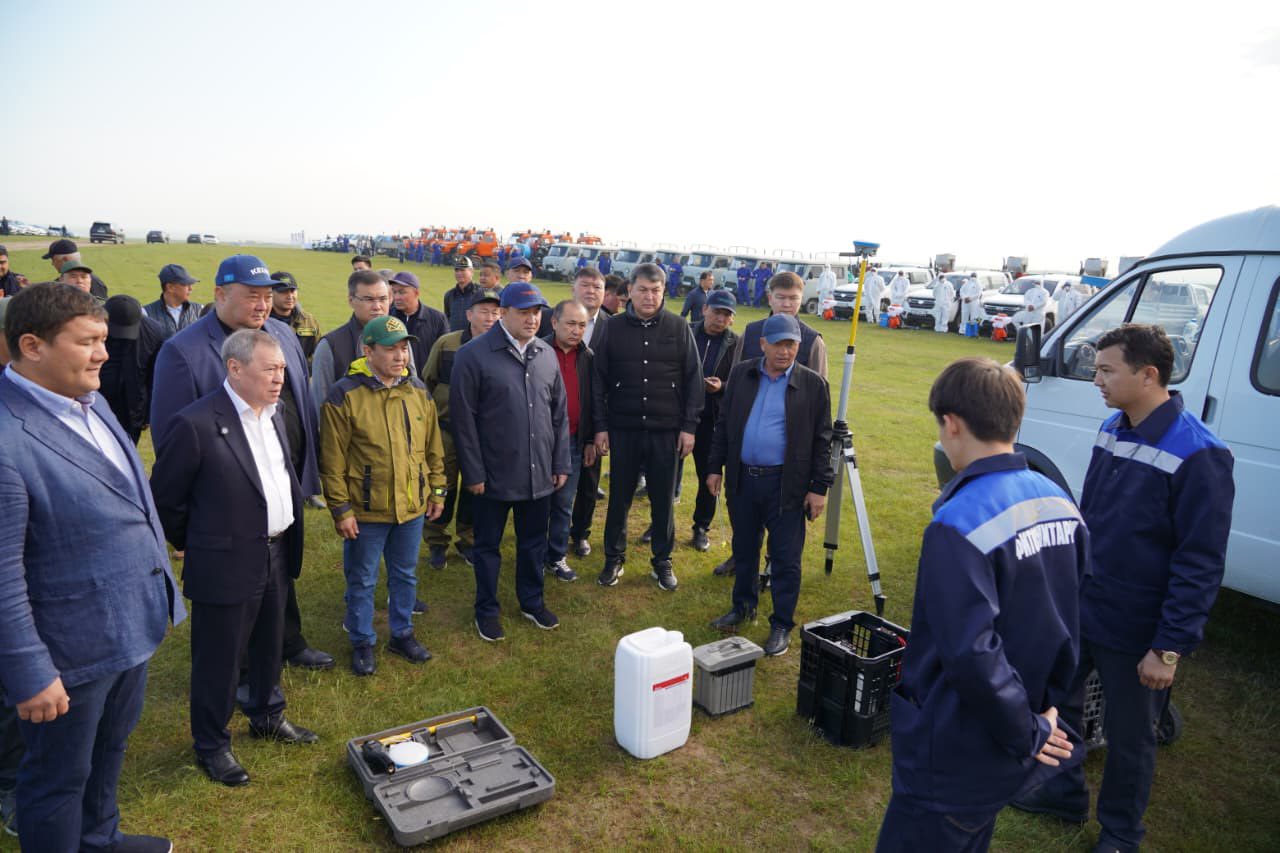 🔰Өңір басшысына шегірткеге қарсы қолданылатын арнайы техникалар мен дәрі-дәрмектер таныстырылып, зиянкестер шоғырланған ошақтарда жүргізіліп жатқан химиялық өңдеу жұмыстары көрсетілді. Облыс әкімі жауаптыларға жұмысты сапалы әрі уақтылы атқаруды тапсырды.
