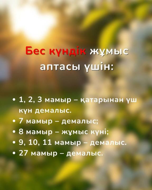 • 7 мамыр – демалыс;