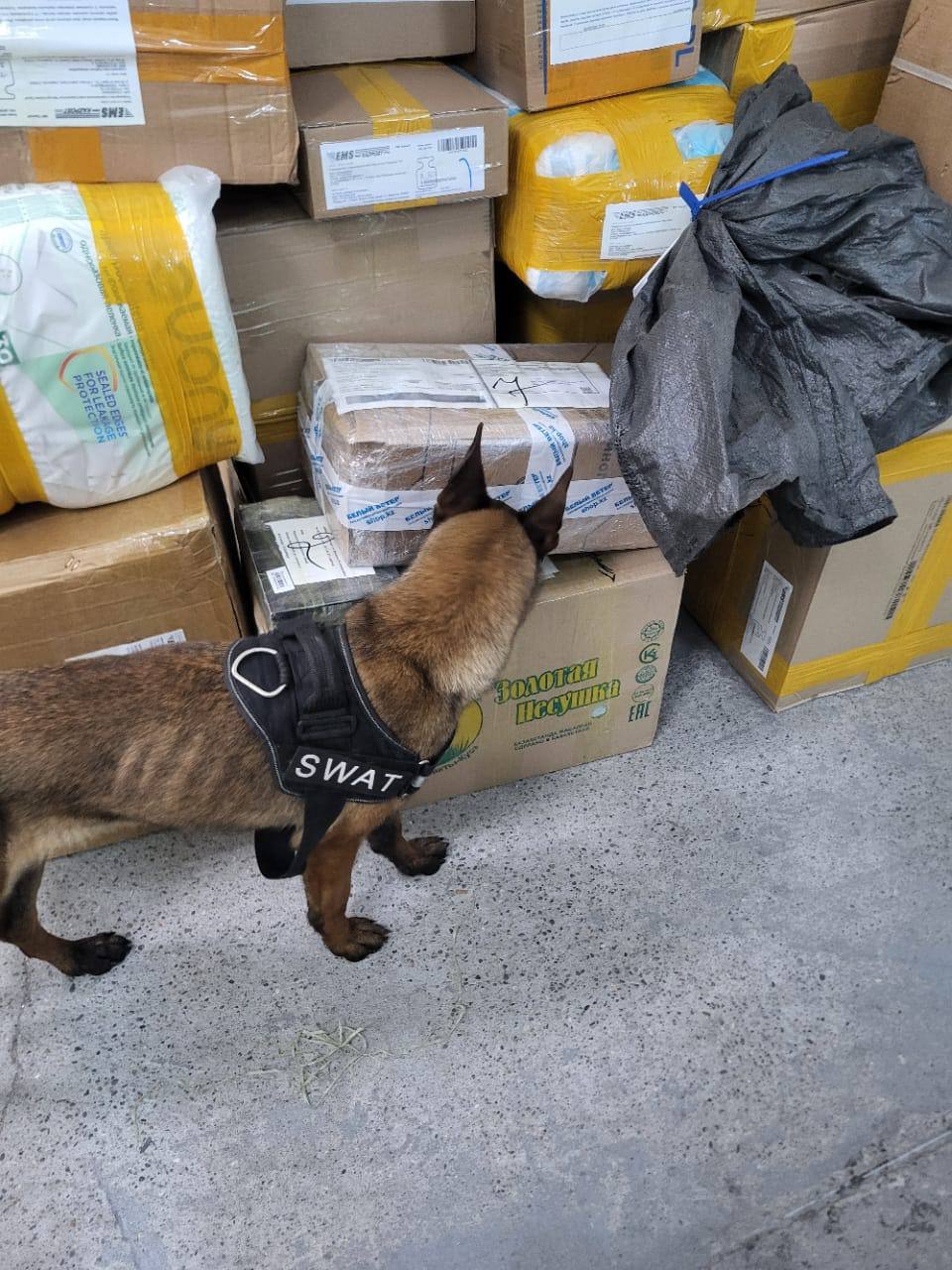 👮‍♂️Рейдтік іс-шараға қатысқан Есірткіге қарсы іс-қимыл басқармасының қызметкерлері мен кинологтар арнайы үйретілген қызметтік иттердің көмегімен күдік тудыратын жөнелтілімдерді мұқият тексеріп, есірткі заттарының иісін анықтауға бағытталған жедел іздестіру жұмыстарын жүргізді. Қызметтік иттер қысқа уақыт ішінде үлкен көлемдегі сәлемдемелерді тексеруге мүмкіндік береді, бұл өз кезегінде құқыққа қарсы әрекеттерді дер кезінде анықтауға ықпал етеді.
