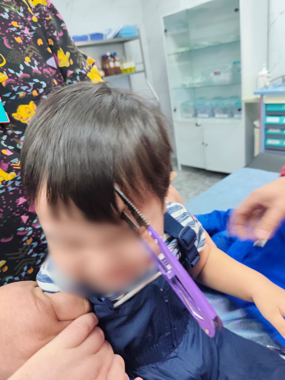 Жедел жәрдем бригадасы баланы Балаларға шұғыл медициналық көмек көрсету орталығының қабылдау бөліміне жеткізді. Ол бірден жансақтау залына ауыстырылып, дәрігерлер жедел түрде қайшыны алып тастады. Осыдан кейін науқас жансақтау және қарқынды терапия бөліміне жатқызылды.