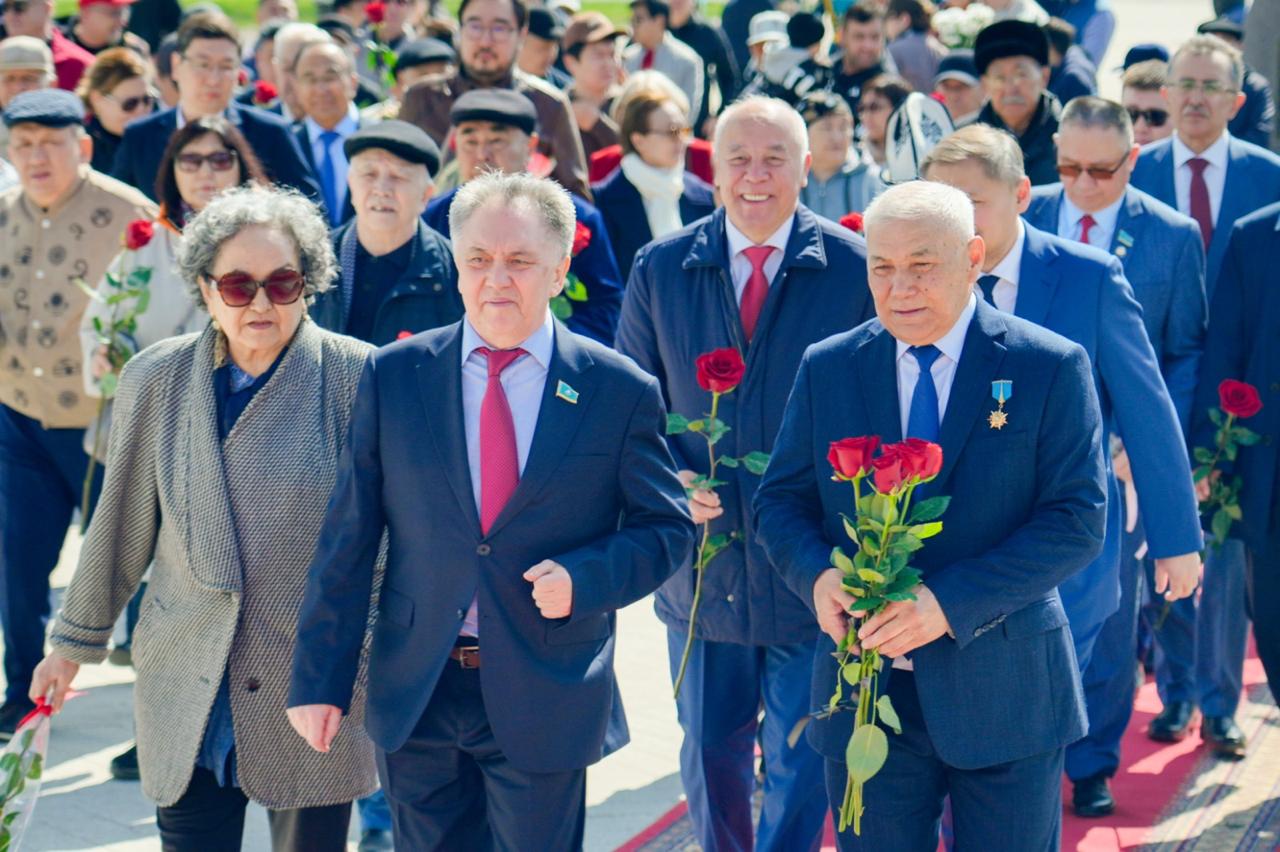 Іс- шараға ғылым және жоғары білім министрі Саясат Нұрбек, Қазақстан республикасы парламенті Сенатының депутаты, халықаралық Қаныш Сәтбаев қоры қамқоршылар кеңесінің төрағасы Алтынбек Нұхұлы, Астана қаласы әкімінің орынбасары Есет Байкен, Сондай-ақ депутаттар, қоғам қайраткерлері, зиялы қауым өкілдері қатысып, заңғар тұлғаның ескерткішіне гүл шоқтарын қойды.