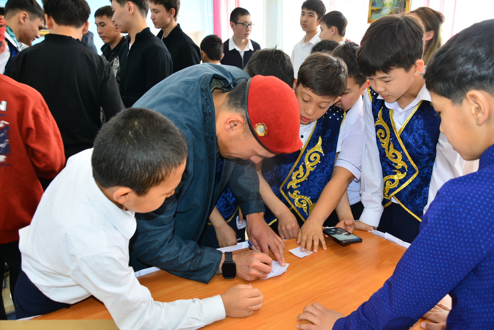 Кездесу барысында оқушылар белсенділік танытып, көкейлеріндегі сұрақтарын қойып, тұшымды жауаптар алды. Қонақтың тағылымды әңгімесі жас буынның бойында елге қызмет етуге деген қызығушылық пен жігерді арттыра түсті.