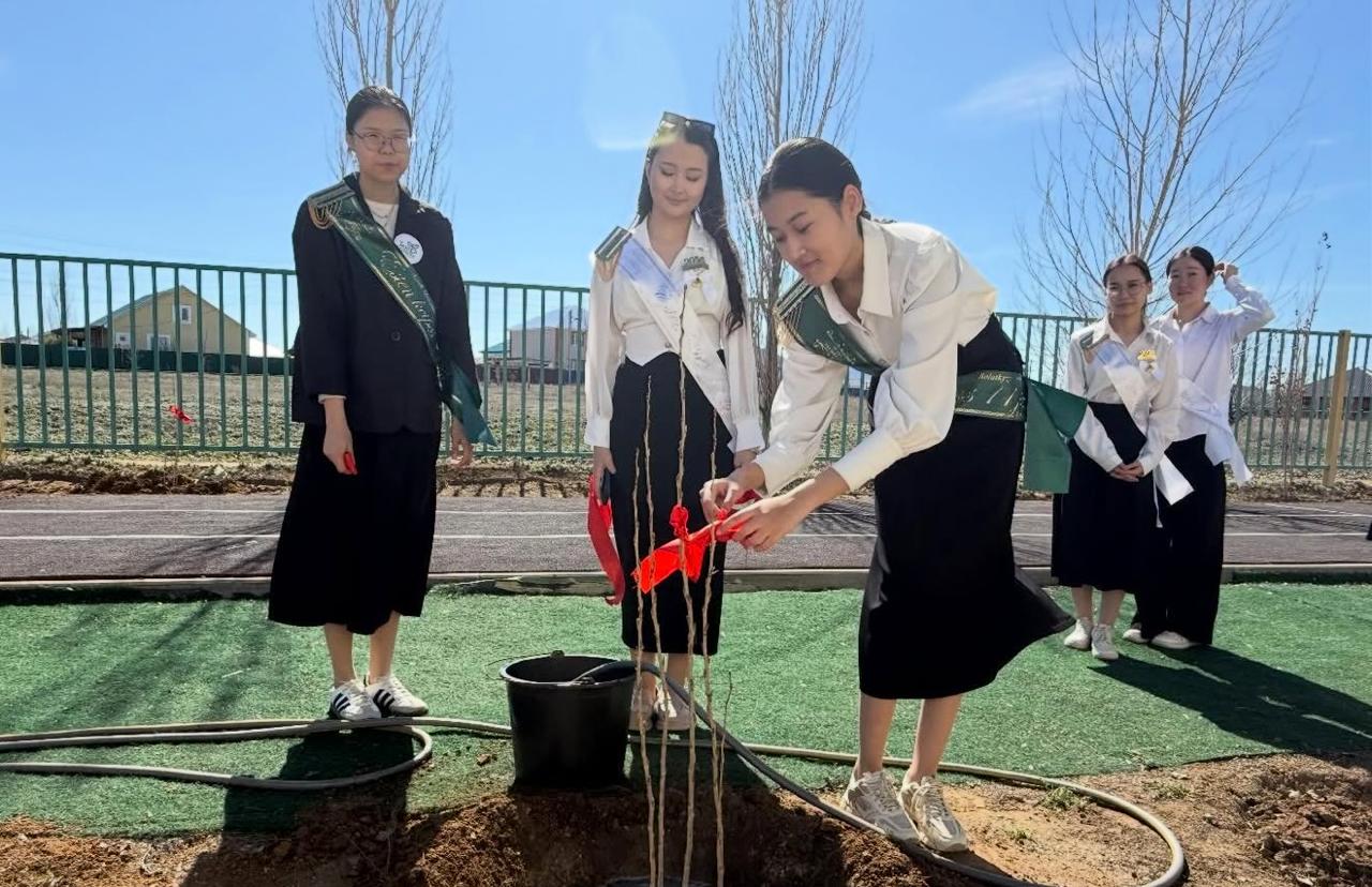 «Таза Қазақстан» акциясы аясында болашақ «Алтын белгі» иегерлері түлектер аллеясын отырғызды