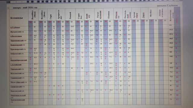 Кешенді аудандық спартакиада қорытындысының кестесі