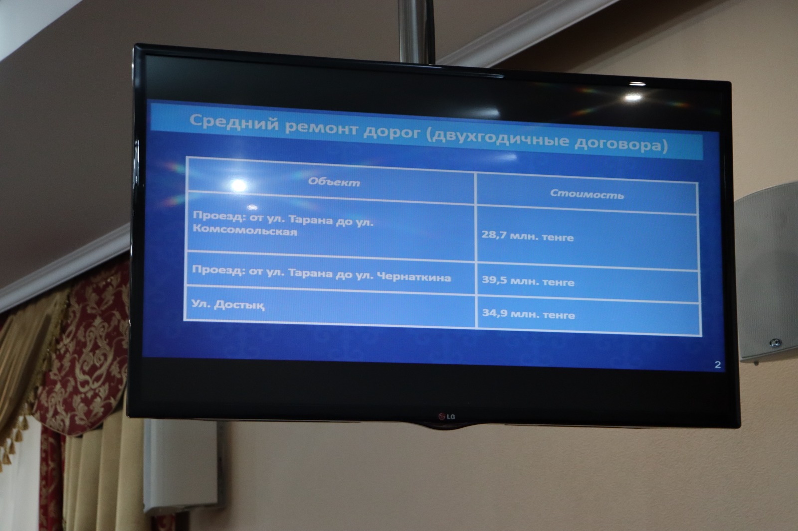 Бүгінгі таңда үш учаскені орташа жөндеуге екі жылдық ауыспалы шарттар жасалды: – Таран көшесінің өтпежолдан Комсомольская көшесіне дейін-28,7 млн теңге;