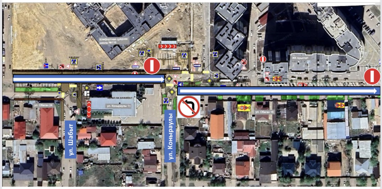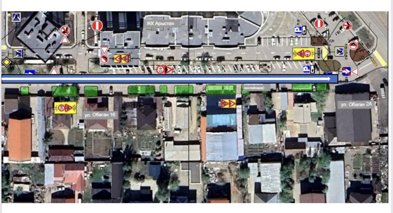 Жол қозғалысы қауіпсіздігін арттыру, жол-көлік оқиғаларын азайту, сондай-ақ оқушылар мен жаяу жүргіншілер үшін қауіпсіз әрі жайлы орта қалыптастыру мақсатында №116 мектеп маңында және Обаған көшесі бойында автокөліктер үшін біржақты қозғалыс енгізіледі.