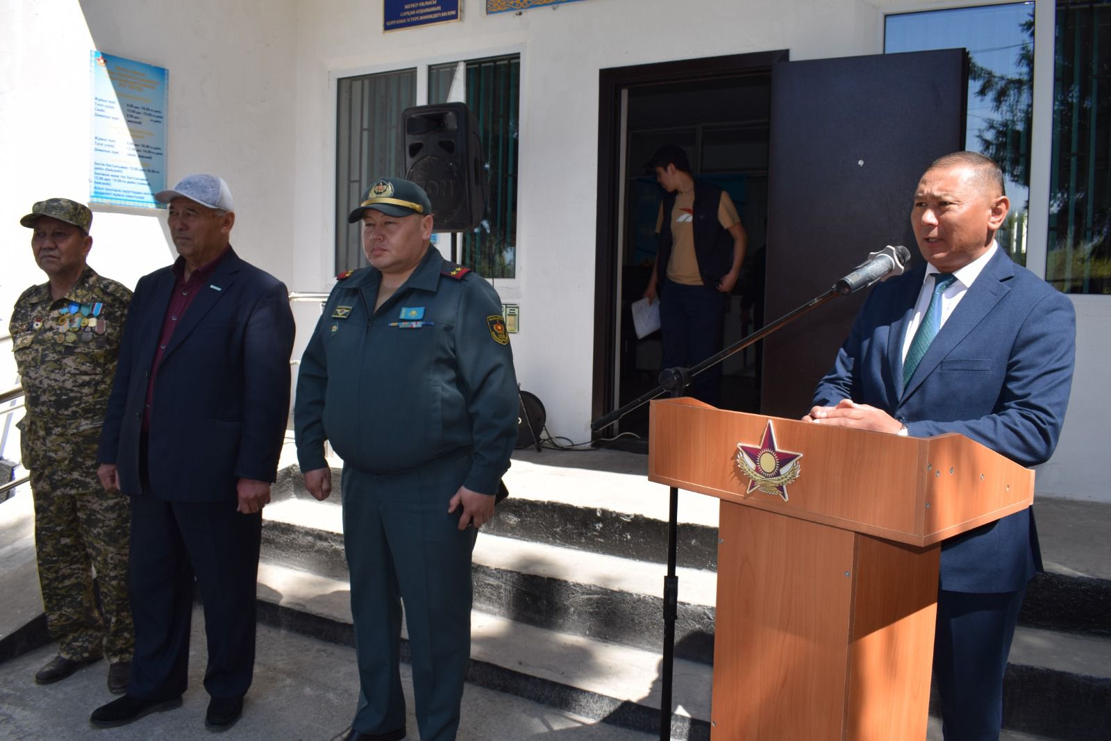 Іс-шараға аудан әкімінің орынбасары Алмас Ажарханұлы қатысып, жас сарбаздарға ізгі тілегін білдіріп, ел алдындағы жауапты міндетті абыроймен атқаруға шақырды.