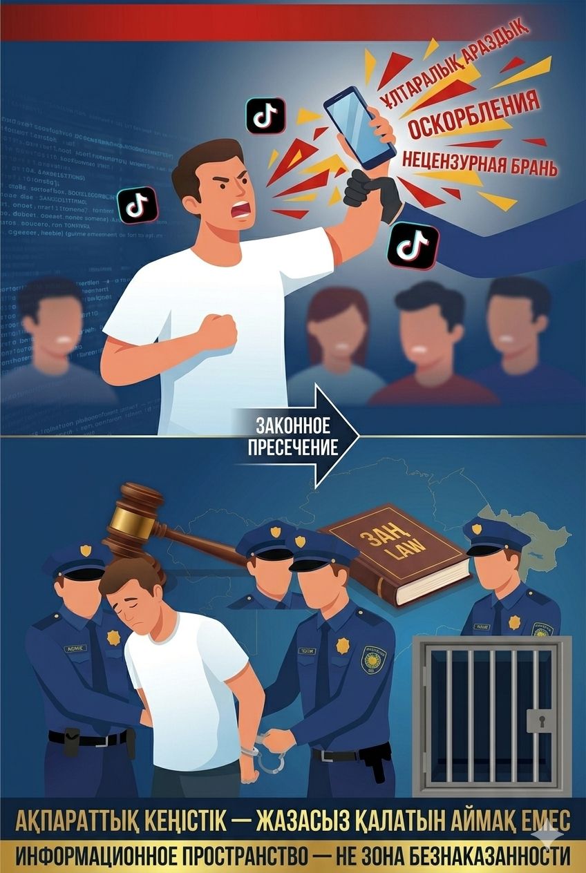 Тікелей эфирден уақытша ұстау изоляторына дейін: ШҚО-да TikTok-та ұлтаралық араздықты қоздыру фактісінің жолы кесілді