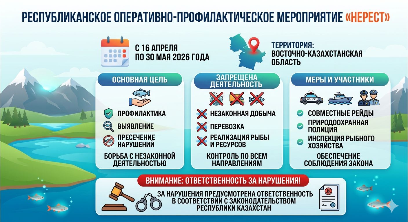 16 сәуірі мен 30 мамыры аралығында өңір аумағында республикалық «НЕРЕСТ» жедел-профилактикалық іс-шарасы өткізіледі.