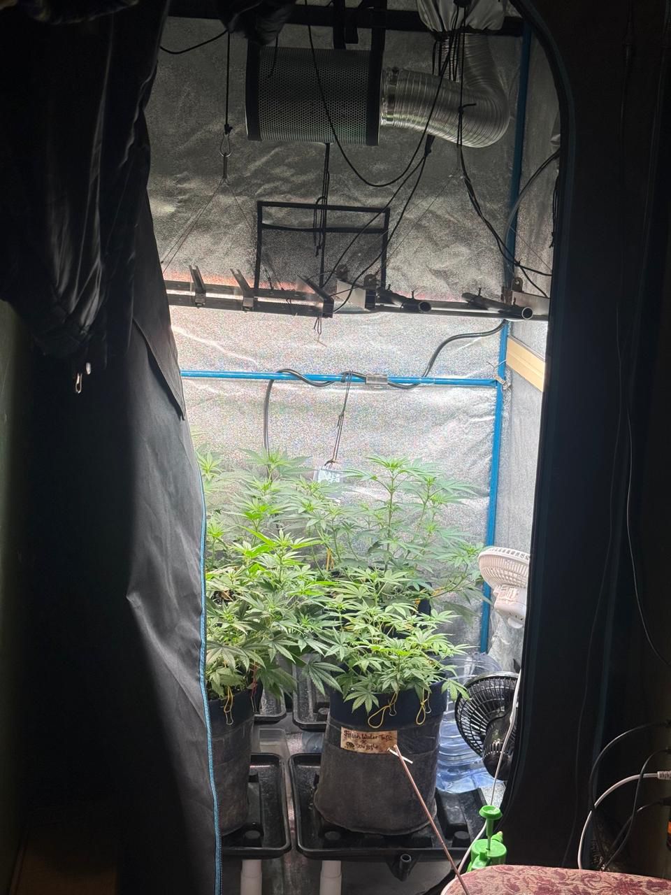 Тінту кезінде оған тиесілі шаруашылық құрылыстардың аумағынан фитолаборатория ретінде жабдықталған бөлме анықталды. Оның ішінен өзіне тән иісі бар жасыл түсті өсімдік бұталары, төрт жарықдиодты шам және желдеткіш табылып, тәркіленді.