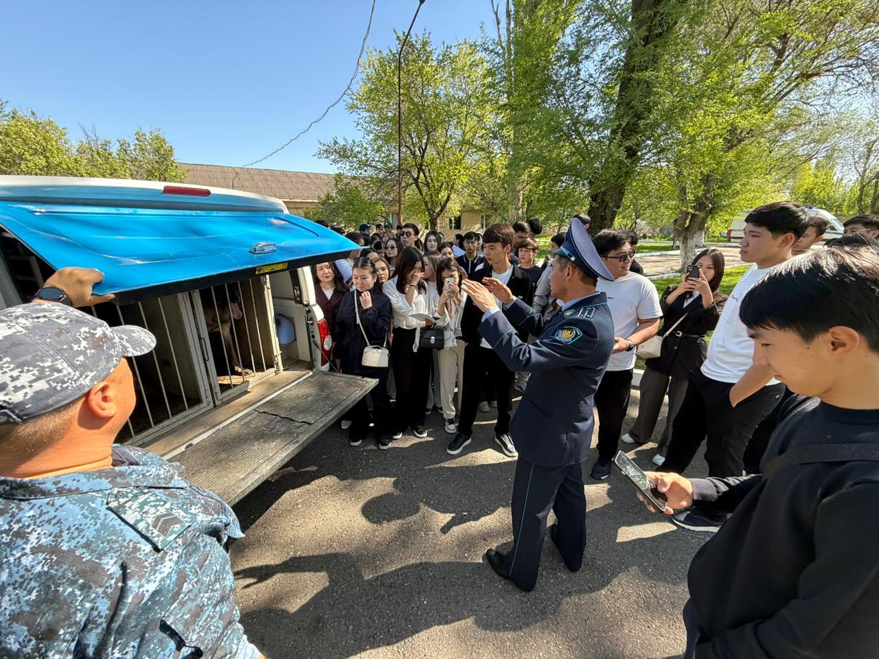 Студенттер қызметтік иттердің жұмысымен танысып қана қоймай, олардың есірткі заттарын қалай анықтайтынын, тапсырмаларды нақты орындайтынын және шартты құқық бұзушыларды ұстауға қалай қатысатынын өз көздерімен көрді.