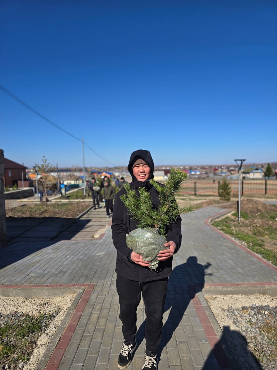 Бірнеше сағаттың ішінде ескерткіш маңы толық ретке келтірілді. Одан кейін қарағай көшеттерін отырғызу басталды. Барлығы 81 түп көшет егілді – бұл 1945 жылғы Жеңіс салютінен бері өткен жылдар санына сәйкес келетін символдық көрсеткіш.