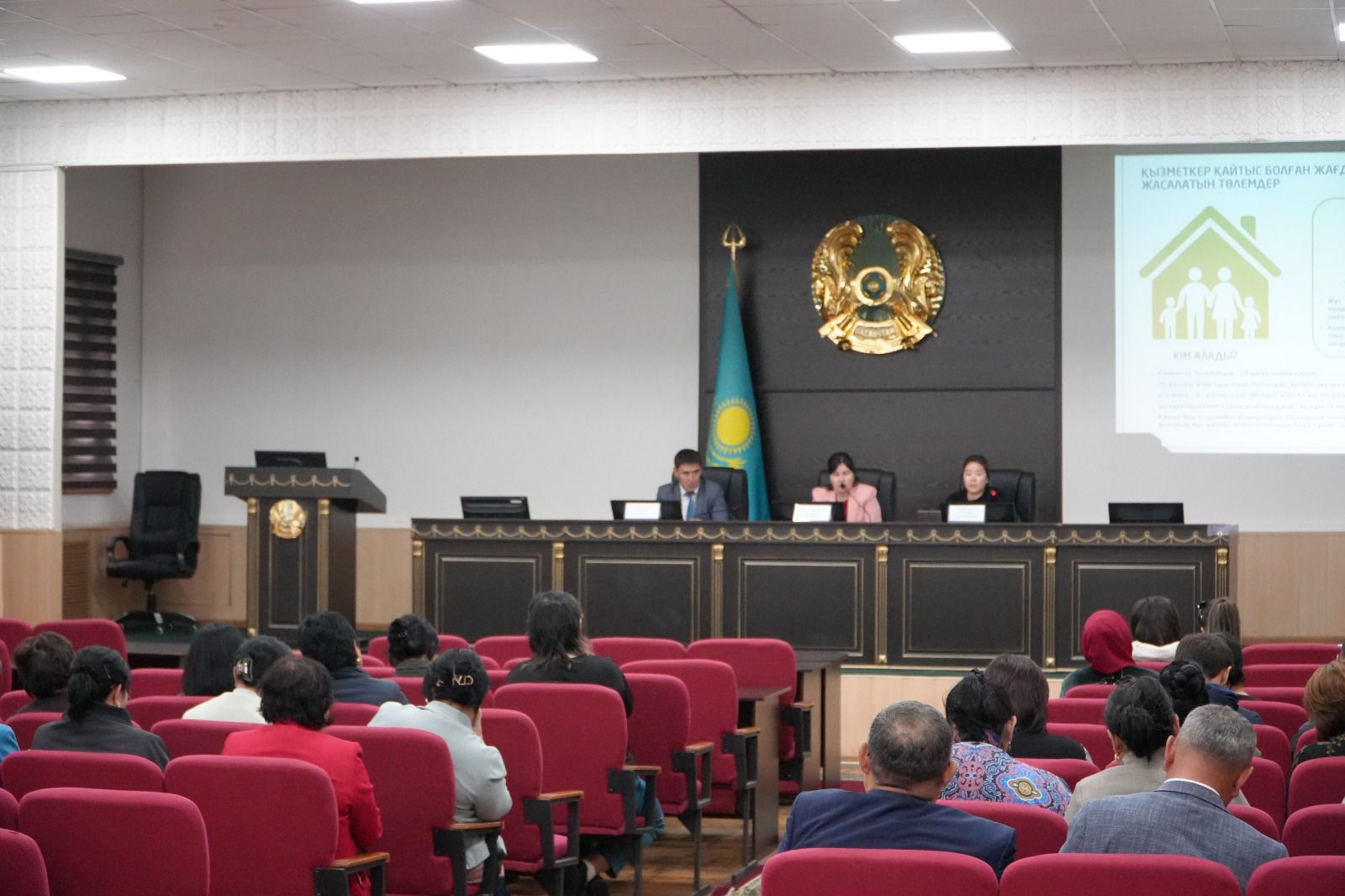 Жиын барысында Жамбыл облысы бойынша еңбек инспекциясы департаменті еңбек саласын бақылау және талдау бөлімінің басшысы Ж.Мухатаева, Мемлекеттік аннуитеттік компания АҚ-ның Жамбыл облыстық филиалының директоры Рапилбек Акбота Бериковна және Standard Life ҚСЖ АҚ бас менеджері Қуанбаева Дана Бақытбекқызы қатысып, өз салалары бойынша түсіндірме жұмыстарын жүргізді.