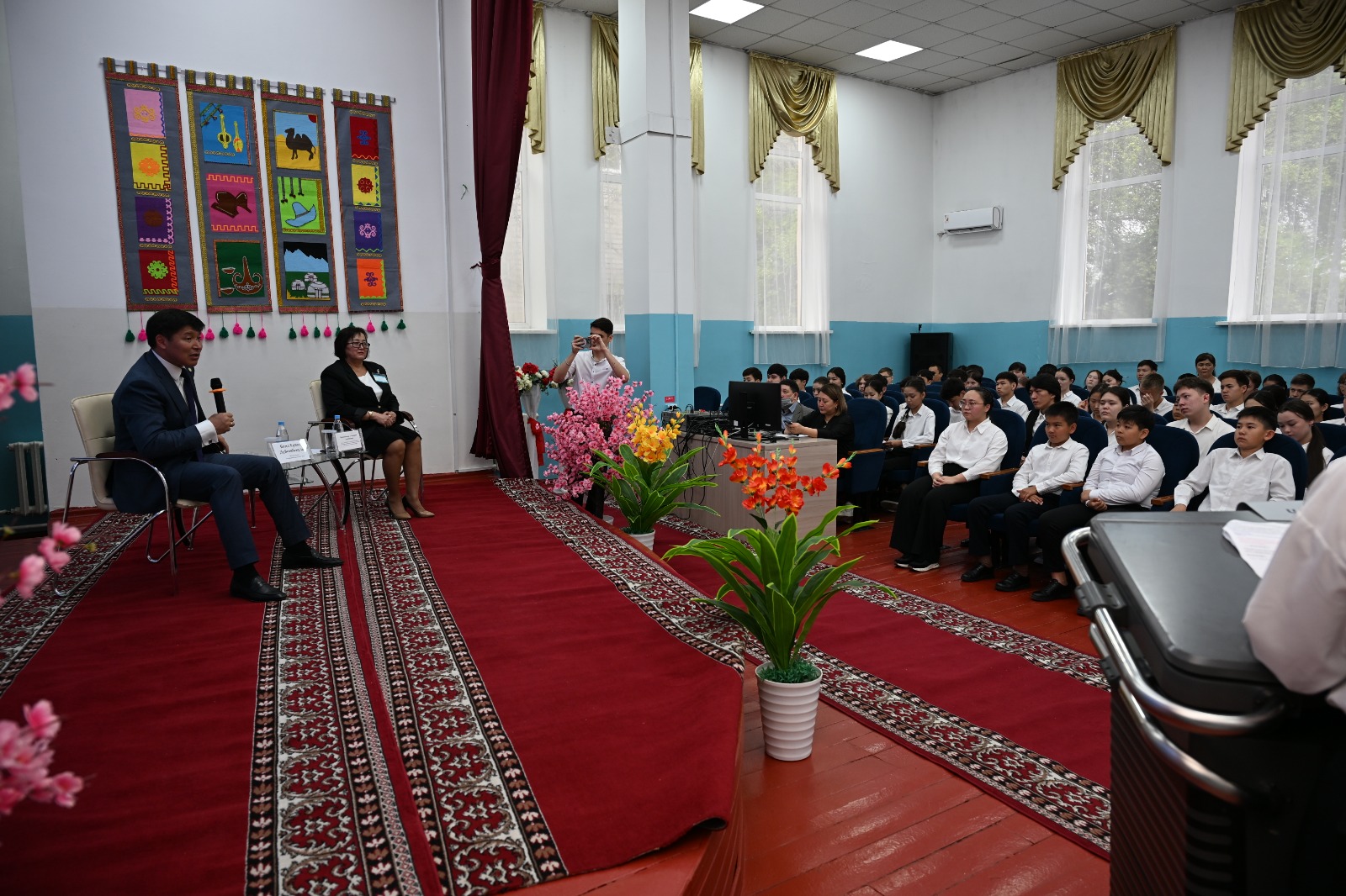 Кездесу барысында қала әкімі оқушылармен ашық әрі еркін форматта диалог құрып, пікір алмасты. Өз кезегінде оқушылар өздерін толғандырған сұрақтарын қойып, көкейлеріндегі ойларымен бөлісті.