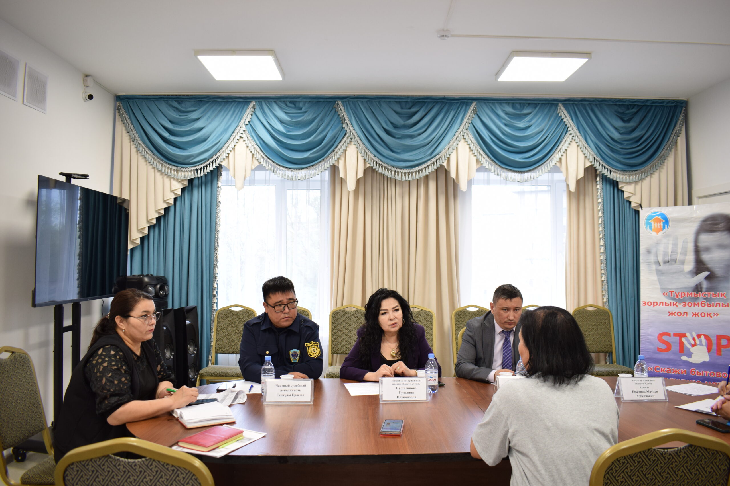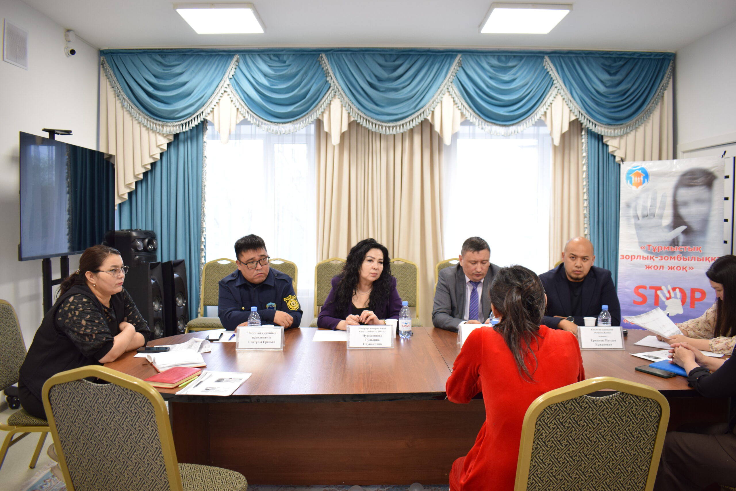 16.04.2026 жылы «Заң мен тәртіп» қағидаттарын ілгерілету мақсатында Жетісу облысы Әділет департаменті басшысының орынбасары Медет Орынбекович Едрисов Жетісу облысы адвокаттар алқасы, Жетісу облысы нотариаттық палатасы мен Жетісу облысы жеке сот орындаушыларының өңірлік палатасының өкілдерімен бірлесіп, «Тұрмыстық зорлық-зомбылық құрбандарына әлеуметтік көмек көрсету орталығы» КММ-де жеке қабылдау өткізді. Жеке қабылдаудың мақсаты – тұрмыстық зорлық-зомбылық мәселесіне тап болған әйелдерді құқықтық көмекпен қамтамасыз ету. Қабылдау барысында 6 азаматшаның сұрақтарына заң шеңберінде жауап беріліп, құқықтық кеңес беру жұмысы жүргізілді.