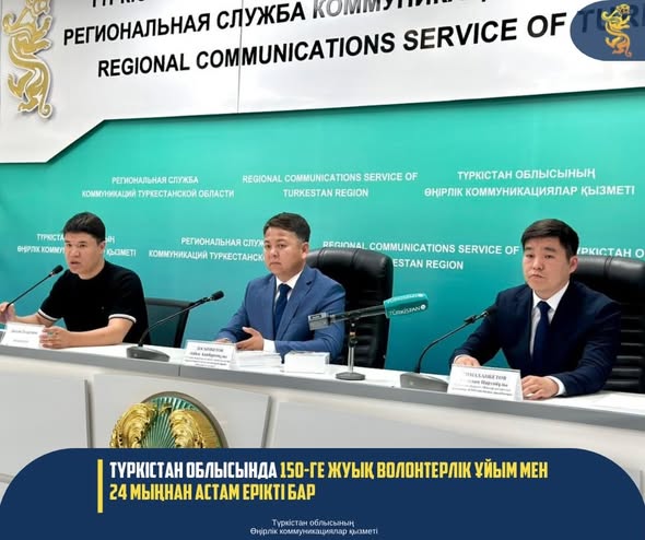 ТҮРКІСТАН ОБЛЫСЫНДА 150-ГЕ ЖУЫҚ ВОЛОНТЕРЛІК ҰЙЫМ МЕН 24 МЫҢНАН АСТАМ ЕРІКТІ БАР