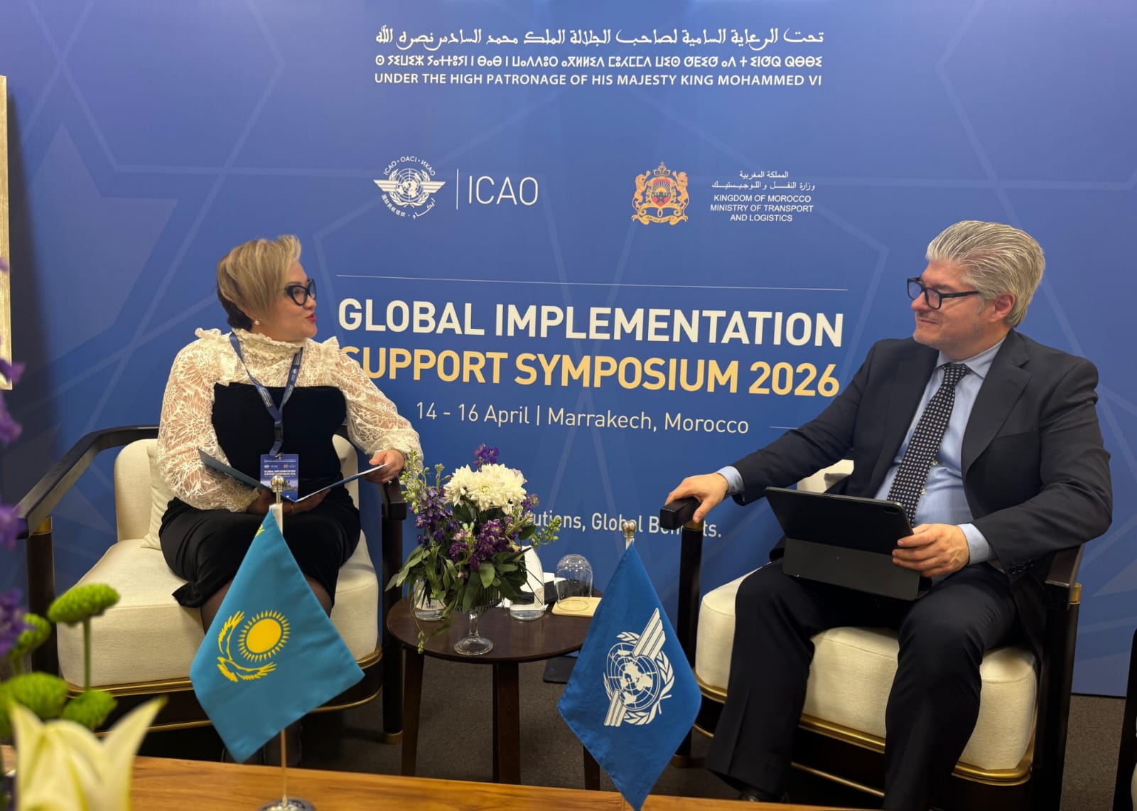 Марракеш қаласында (Марокко) өткен ICAO Global Implementation Support Symposium 2026 аясында Халықаралық азаматтық авиация ұйымының (ИКАО) Бас хатшысы Хуан Карлос Саласар мен ҚР КМ Азаматтық авиация комитетінің төрағасы Салтанат Томпиеваның кездесуі өтті. Кездесуге сондай-ақ ИКАО EUR/NAT бюросының Өңірлік директоры Николас Ралло мен ҚР-ның ИКАО жанындағы Тұрақты өкілі Тимур Тілегенов қатысты.