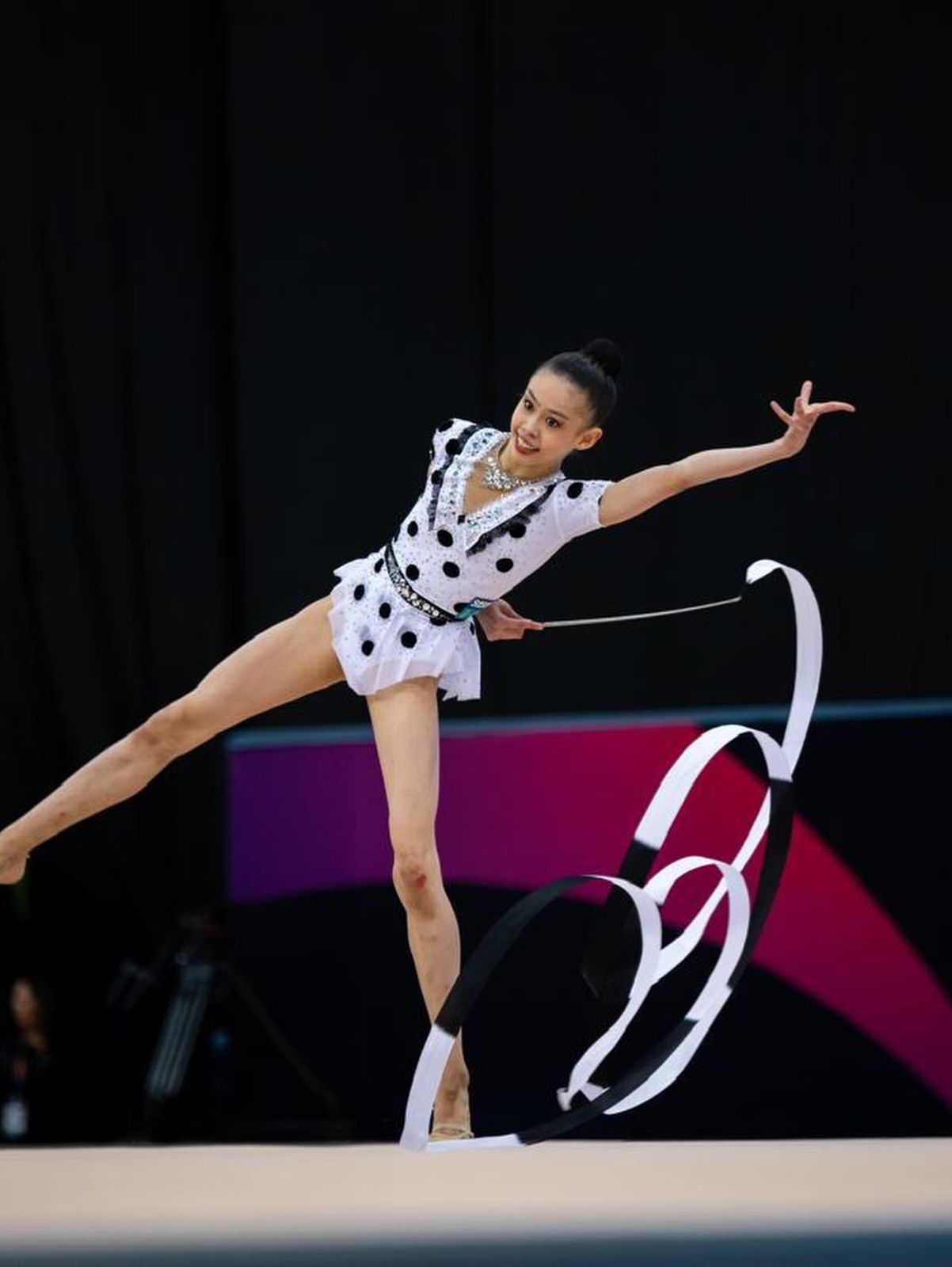 Жасөспірімдер арасындағы әлем чемпионы Ақмарал алғаш рет ересектер деңгейіндегі ірі халықаралық жарысқа қатысып, таспа жаттығуында 27.000 ұпай жинап, қола медаль иеленді.
