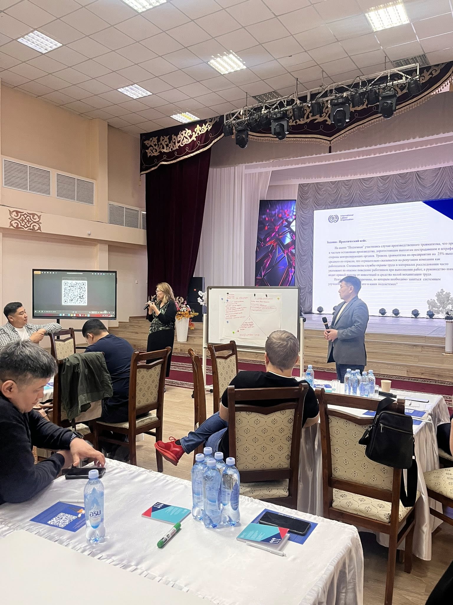 Іс-шараны Халықаралық еңбек ұйымы ҚР Еңбек және халықты әлеуметтік қорғау министрлігінің «Еңбекті қорғау жөніндегі республикалық ғылыми-зерттеу институты» ШЖҚ РМК-мен бірлесіп ұйымдастырды. Курс лекторлары ретінде еңбекті қорғау саласындағы сертификатталған сарапшылар — Еділбаева Л.И. және Омарова А.Т. тартылды.