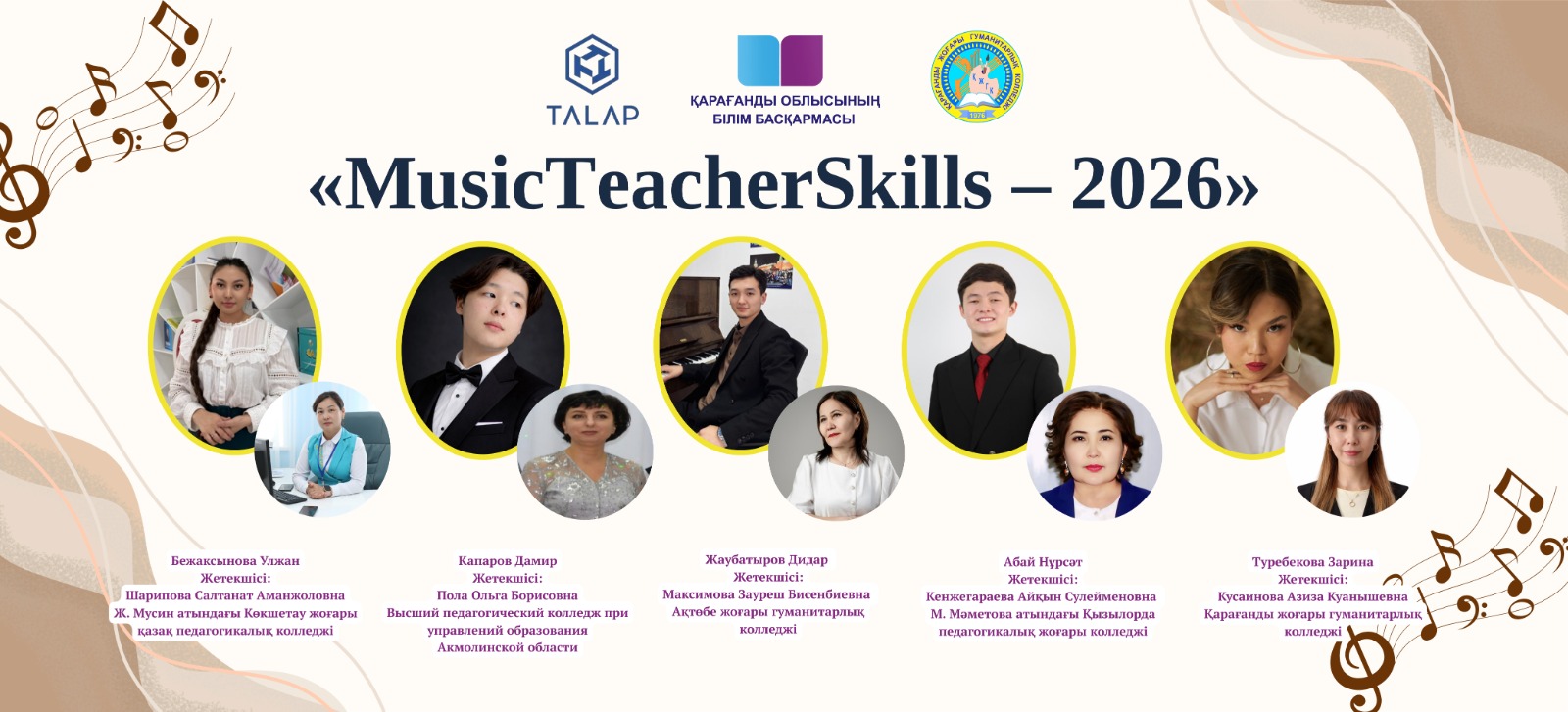 Қарағанды жоғары гуманитарлық колледжінің 50 жылдық мерейтойы аясында ұйымдастырылған «MusicTeacherSkills – 2026» республикалық байқауының алғашқы күні жоғары деңгейде өтті. Байқау Қарағанды облысының білім басқармасының қолдауымен және «Talap» КЕАҚ келісімі негізінде оқу-әдістемелік бірлестіктің бекітілген жоспарына сай жүргізілуде.