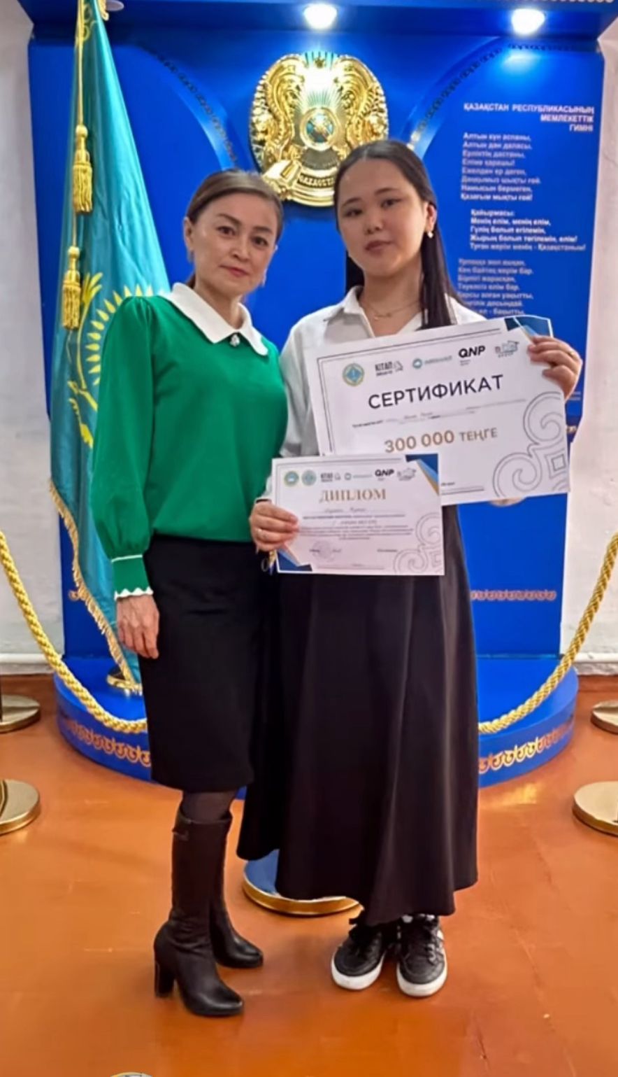 Оқушы 300 мың теңге көлемінде қаржылай сыйлыққа ие болып, облыстық кезеңге жолдама алды.