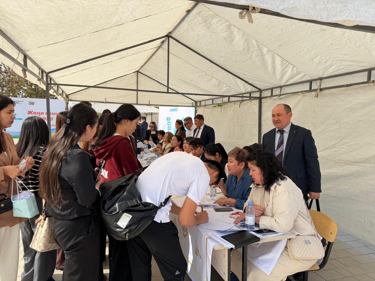 Осы күндері Түркістан қаласында бос жұмыс орындары жәрмеңкесі өтуде — бұл жұмыс берушілер мен жұмыс іздеушілерді біріктіретін жаңа мүмкіндіктер алаңы.
