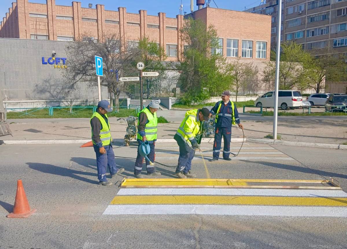 20 сәуірде Ақтау қаласының орталық жолдарында кезекті санитарлық тазалық жұмыстары жүргізіліп, жол таңбалары жаңартылды.