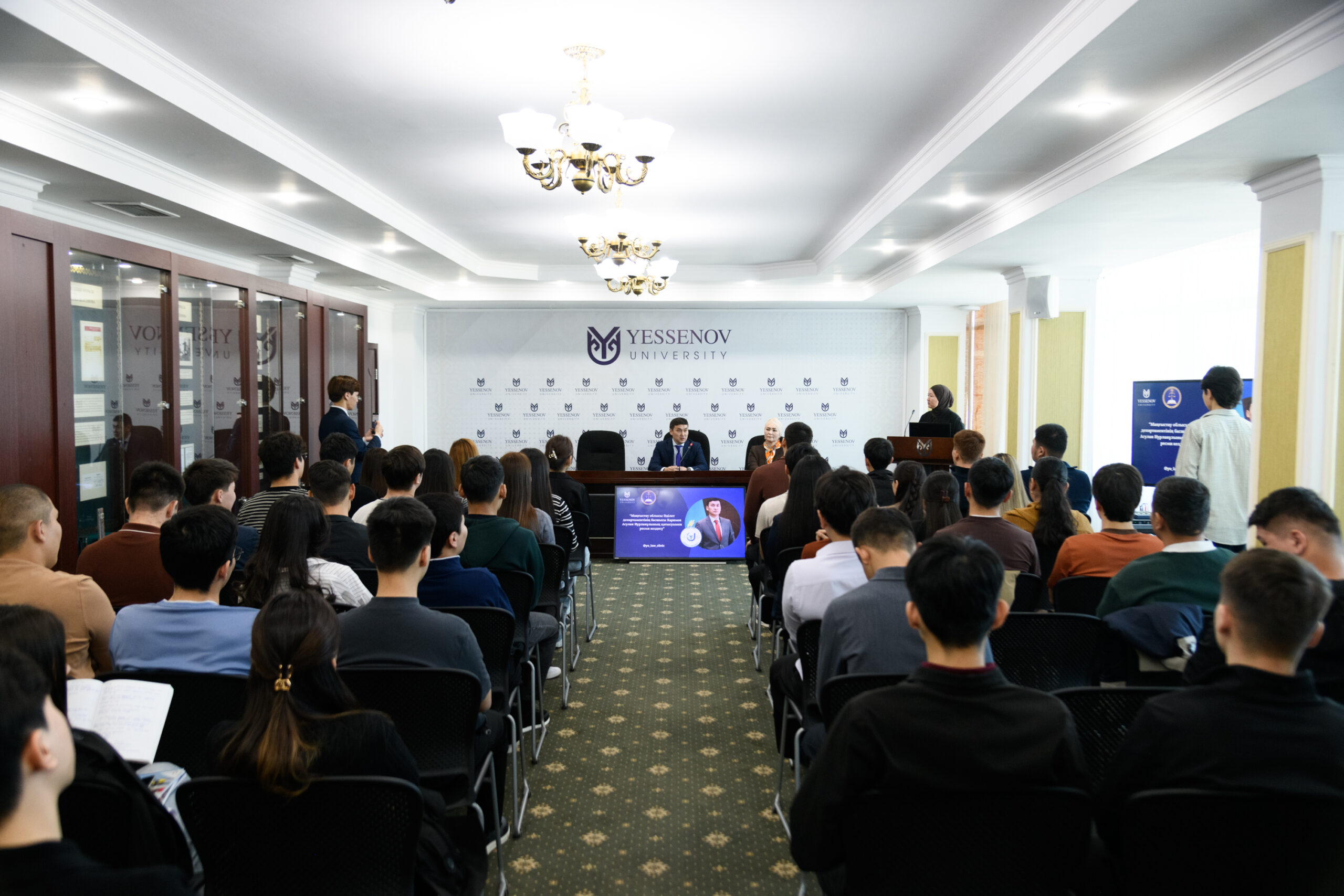 Осы орайда, Маңғыстау облысының Әділет департаментінің басшысы А.Н.Каримов Ш. Есенов атындағы Каспий технологиялар және инжиниринг университетінің «Құқықтану» мамандығы бойынша білім алып жатқан студенттермен кездесу өткізіп, Әділет департаментінің қызметі, сондай-ақ Қазақстан Республикасының жаңартылған Конституциясы туралы кеңінен баяндады.