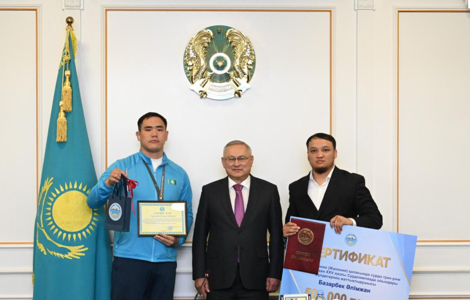 Өңір басшысы спортшыны жоғары жетістігімен құттықтап, оның Токио қаласында өткен XXV Сурдлимпиада ойындарындағы жеңісі тек Жетісу үшін ғана емес, бүкіл ел үшін маңызды оқиға болғанын жеткізіп, жылы лебізін білдірді.