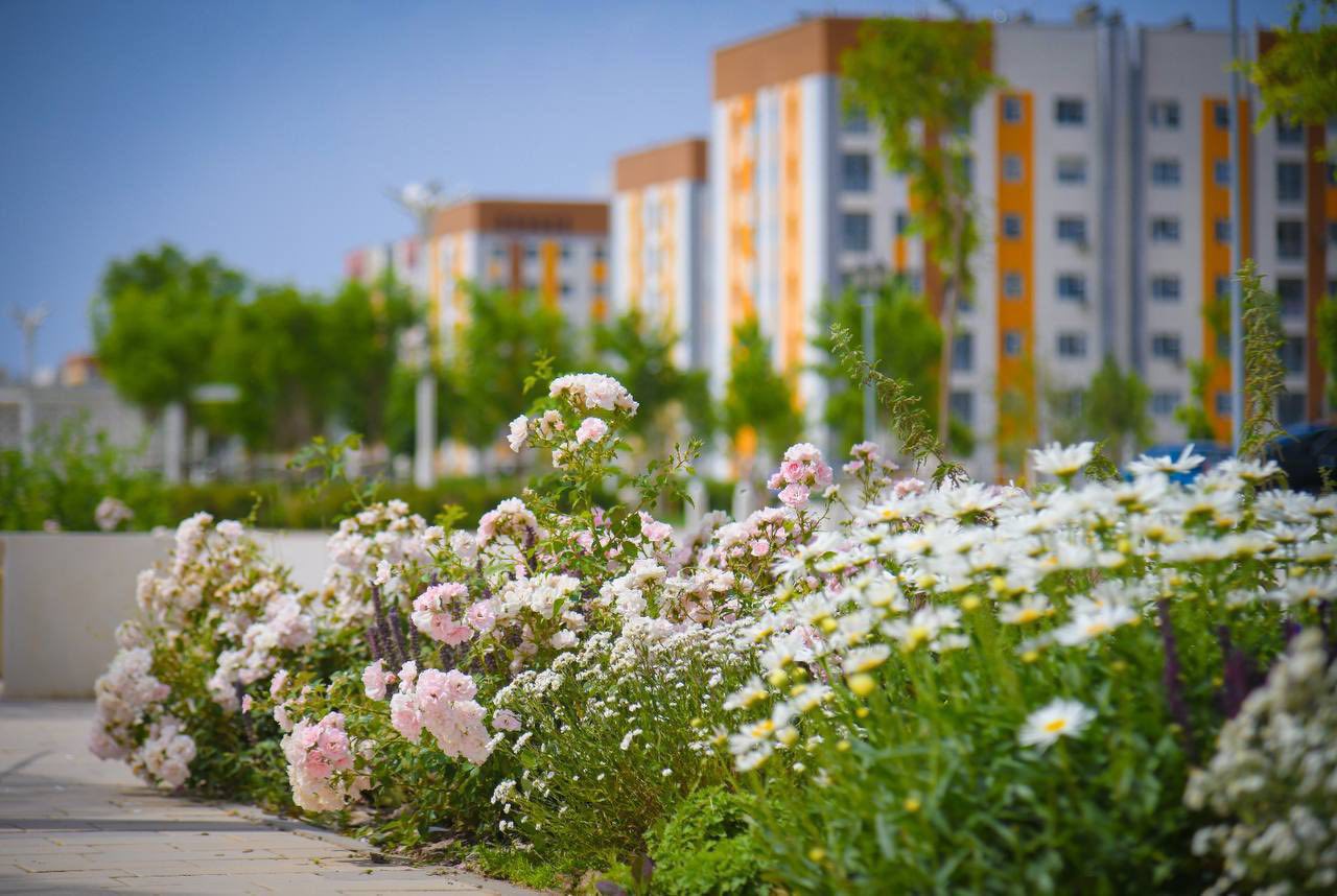 Түркістан қаласында көктем мезгілінде егілген гүлдер қазіргі таңда жайқалып өсіп, қала келбетіне ерекше көрік беруде.