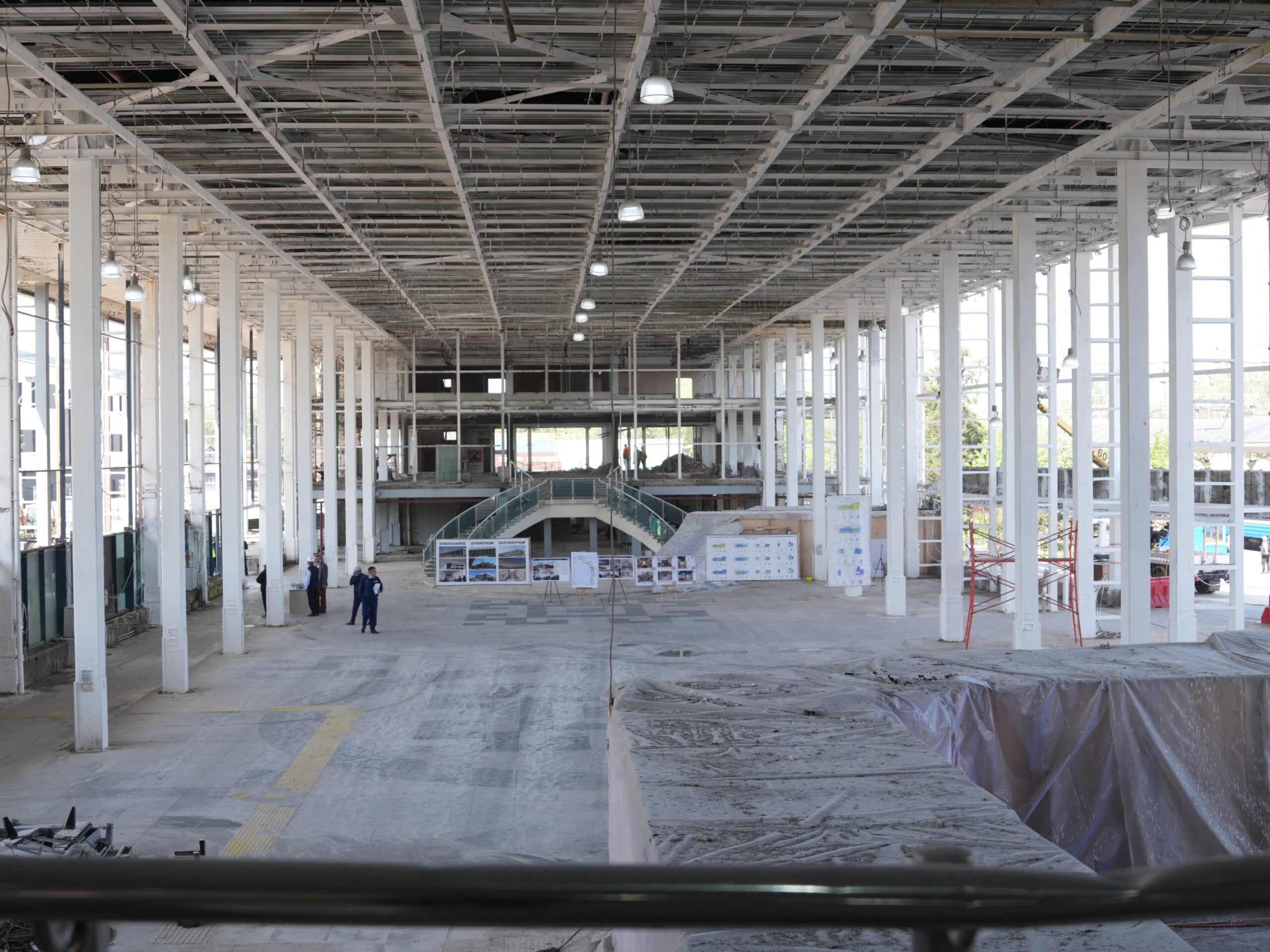 Қазіргі уақытта нысанда шатыр орнату, ғимарат қаңқасын күшейту, сыртқы инженерлік желілерді тарту, сондай-ақ ішкі әрлеу жұмыстары жүргізілуде.