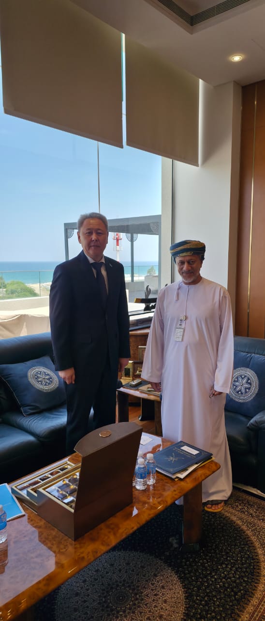 2026 жылғы 20 сәуірде Қазақстан Республикасының Оман Сұлтандығындағы Елшісі Айдарбек Тұматов Оман Сұлтандығы Инвестициялық қорының президенті Әбдүсаләм Әл-Мүршидимен кездесу өткізді.