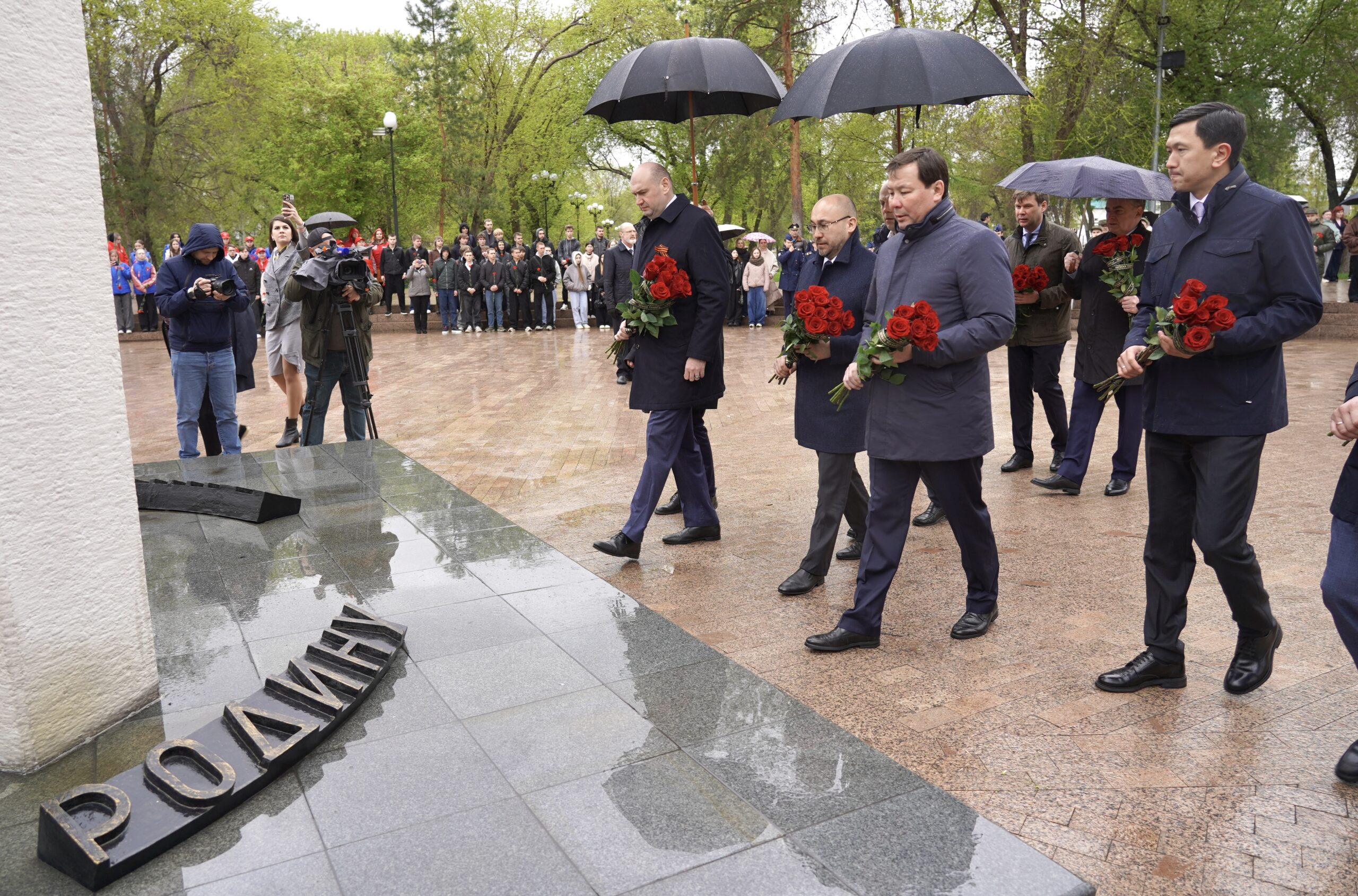 В рамках поездки казахстанская делегация и представители российской стороны во главе с Е.Солнцевым возложили цветы к Вечному огню.