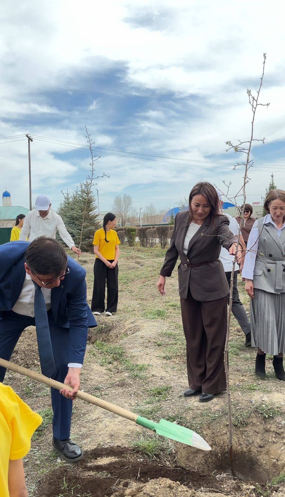Алдымен К. Нұрбаев атындағы орта мектепке барып, «Таза Қазақстан» республикалық экологиялық акциясы аясында мектеп ұжымымен бірге ағаш көшеттерін отырғызу жұмыстарына қатысты. Бұл игі бастама қоршаған ортаны қорғау, аумақты көгалдандыру және жас ұрпақтың табиғатқа деген жанашырлық мәдениетін қалыптастыруға бағытталды.