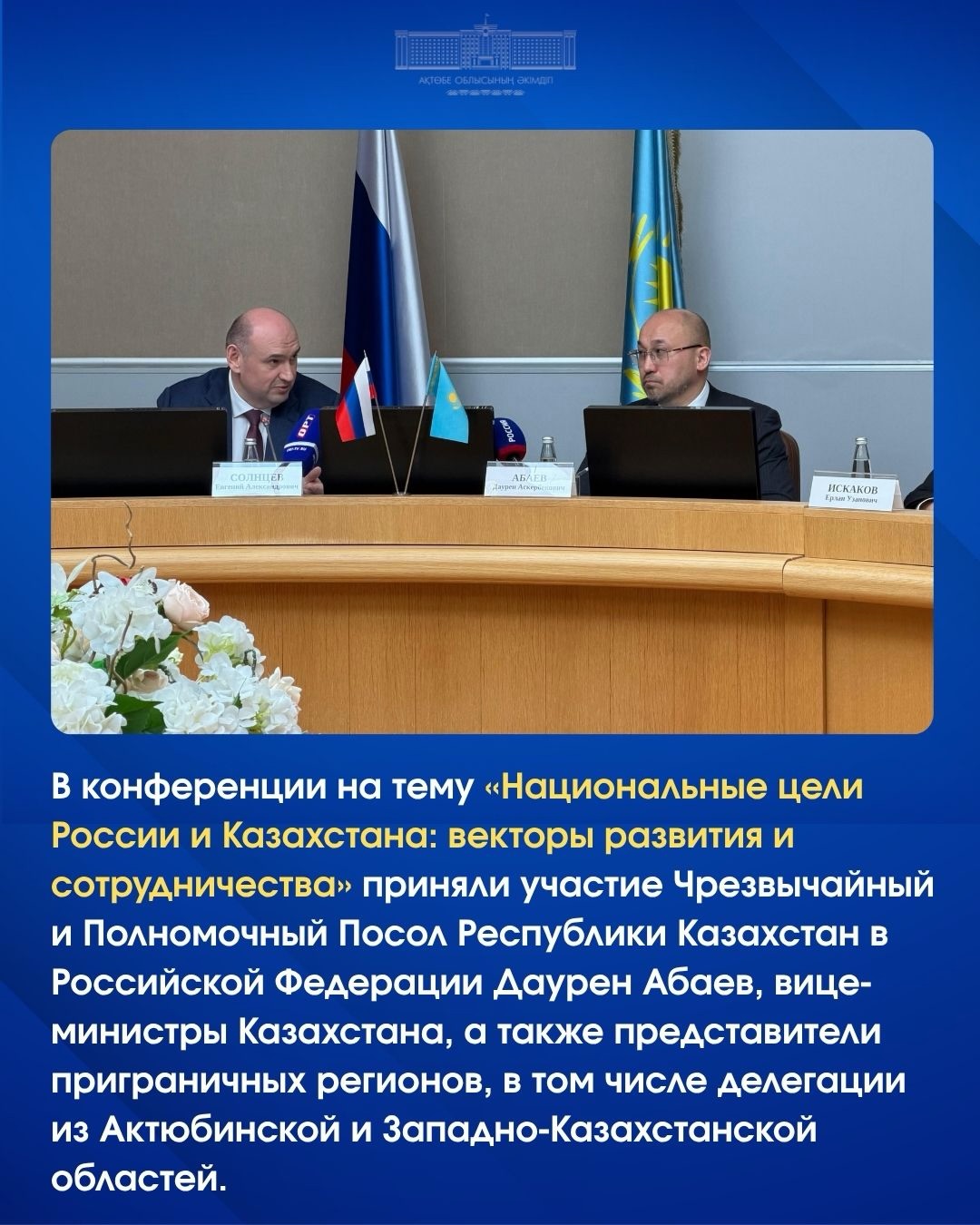 ⚜️ «Ресей мен Қазақстанның ұлттық мақсаттары: даму және ынтымақтастық бағыттары» тақырыбындағы конференцияға Қазақстан Республикасының Ресей Федерациясындағы Төтенше және Өкілетті Елшісі Дәурен Абаев, Қазақстанның вице-министрлері, сондай-ақ шекаралас өңірлердің өкілдері, соның ішінде Ақтөбе және Батыс Қазақстан облыстарының делегациялары қатысты.