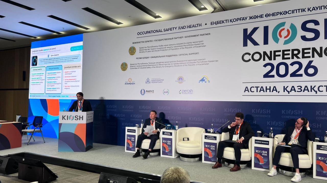 Астанада 28-30 сәуір аралығында еңбекті қорғау және өнеркәсіптік қауіпсіздік жөніндегі 14-ші қазақстандық халықаралық конференциясы мен көрмесі – KIOSH 2026 өтуде. Ауқымды алаңда отандық және шетелдік сарапшылар жұмыскерлердің қауіпсіздігі мен құқықтарын қорғауға қатысты өзекті мәселелердің кең ауқымын талқылап, ашық диалог жүргізуде. Конференцияның бірінші күніндегі басты оқиға «Жасанды интеллект: Қазақстан қауіпсіздіктің жаңа моделін қалыптастыруда» тақырыбындағы стратегиялық пленарлық сессия болды. Оның аясында ҚР Еңбек және халықты әлеуметтік қорғау бірінші вице-министрі Ербол Тұяқбаев қатысушыларды еліміздегі еңбекті қорғау саласын цифрландырудың қазіргі жағдайы мен даму перспективалары туралы жан-жақты хабардар етті. Жалпы конференция бағдарламасына саланың негізгі бағыттарын қамтитын 11 тақырыптық сессия мен бизнес-ойын енгізілген.