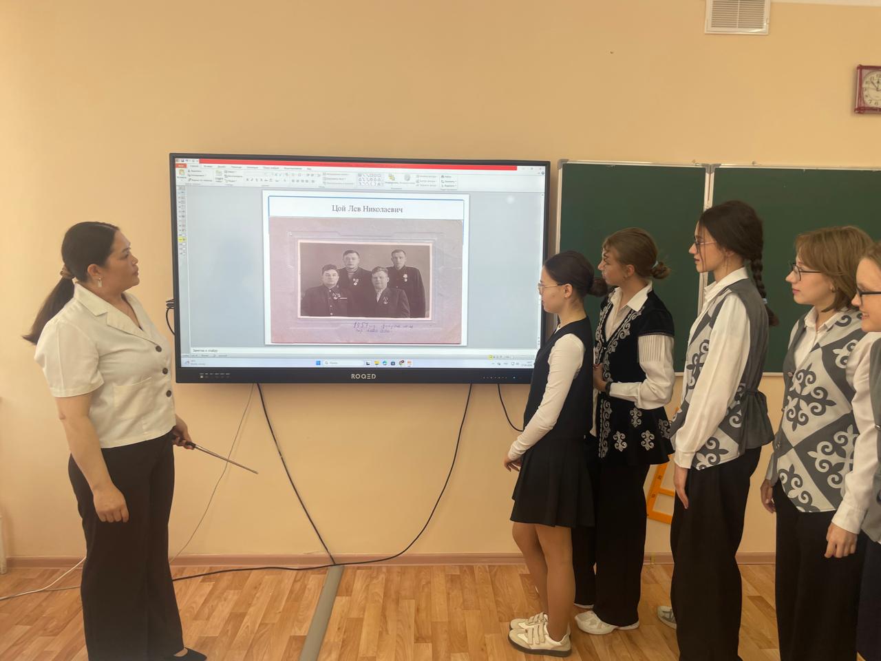 2026 жылғы 27 сәуірде Жітіқара қаласындағы Абай атындағы мектеп-лицейдің 8-сынып оқушылары үшін Жітіқара өңірлік мемлекеттік архивінің маманы Есмурзина А.И. «1941 жылғы 22 маусым. Қасіреттен Жеңіс қаруына дейін» тақырыбында Ұлы Отан соғысындағы Жеңіс күніне арналған мектеп сабағын өткізді. Слайд-презентация арқылы Ұлы Отан соғысының басталуы, тыл еңбеккерлері және олардың Жеңісті жақындатудағы рөлі туралы материалдар ұсынылды. Оқушыларға Жітіқара ауданының тыл еңбеккерлері – Цой Лев Николаевич пен Базлова Агафья Максимовнаның фотосуреттері мен марапат құжаттары көрсетіліп, олардың өмірі мен еңбек жолы туралы мәлімет берілді.