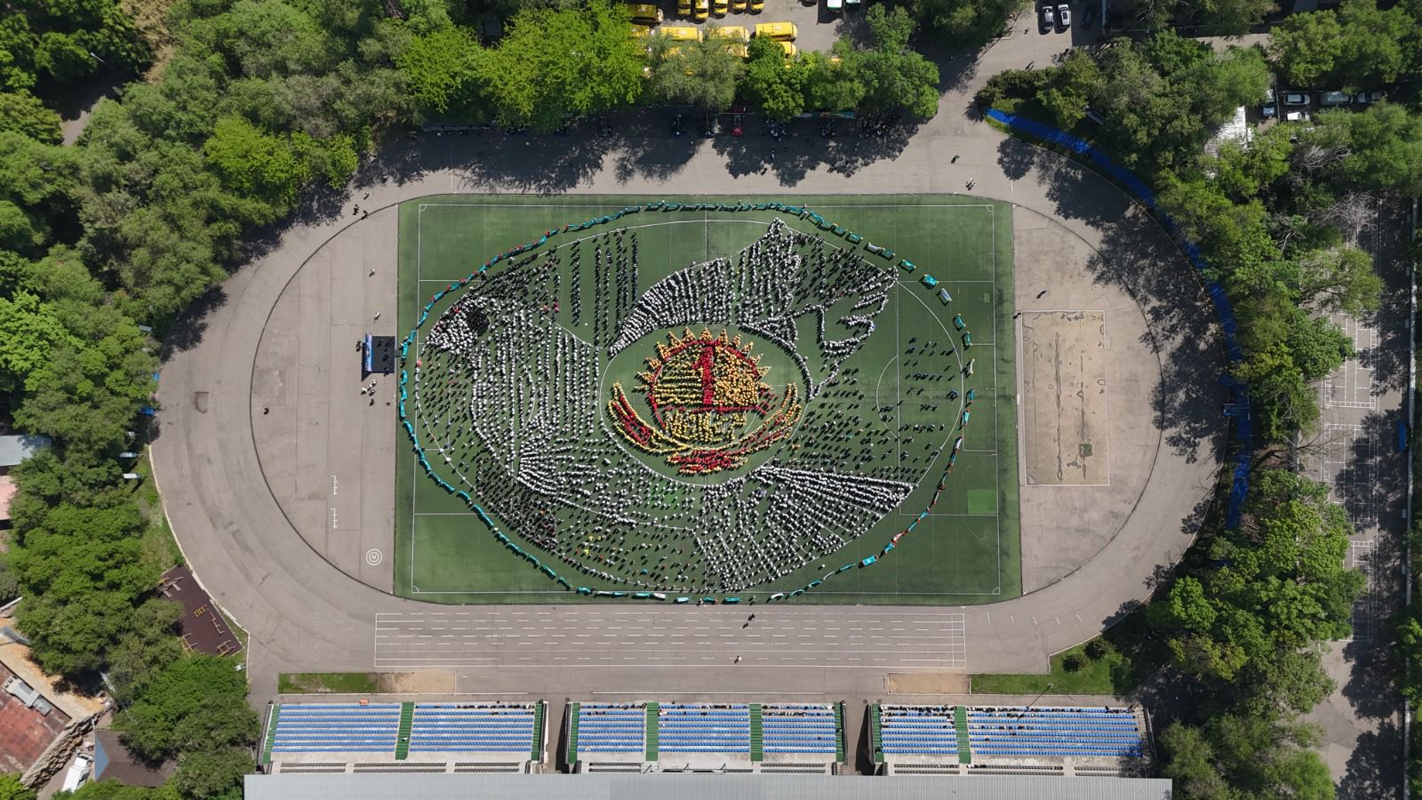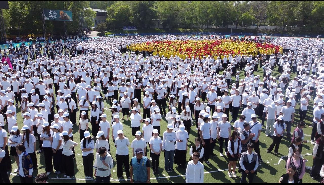 Акция аясында 6500 оқушы бір сапқа тұрып, бейбітшілік көгершінінің бейнесін жасады.