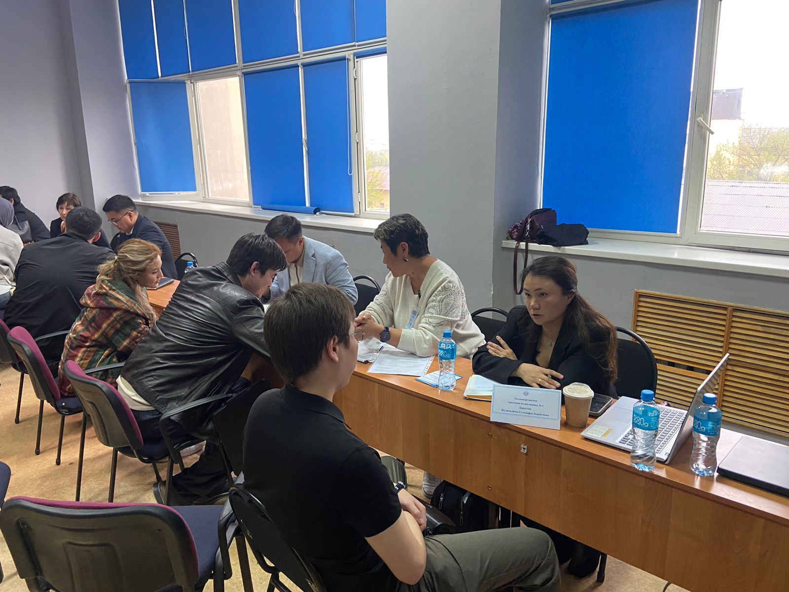 «Б» корпусының, әкімшілік мемлекеттік лауазымдары санаттарына арналған үлгілік біліктілік талаптарына сәйкес жұмысқа жоғары медициналық білімі, жоғары оқу орнынан кейінгі білімі ( қоғамдық денсаулық сақтау және/немесе жалпы медицина және/немесе педиатрия және/немесе емдеу ісі және/немесе медициналық профилактикалық іс) бар тұлғалар қабылданады. Осыған байланысты департаменттің медициналық-әлеуметтік сараптама қызметкерлері арасындағы кадр тапшылығын шешу мүмкіндіктері және өзара ынтымақтастықтың болашағы қарастырылды.